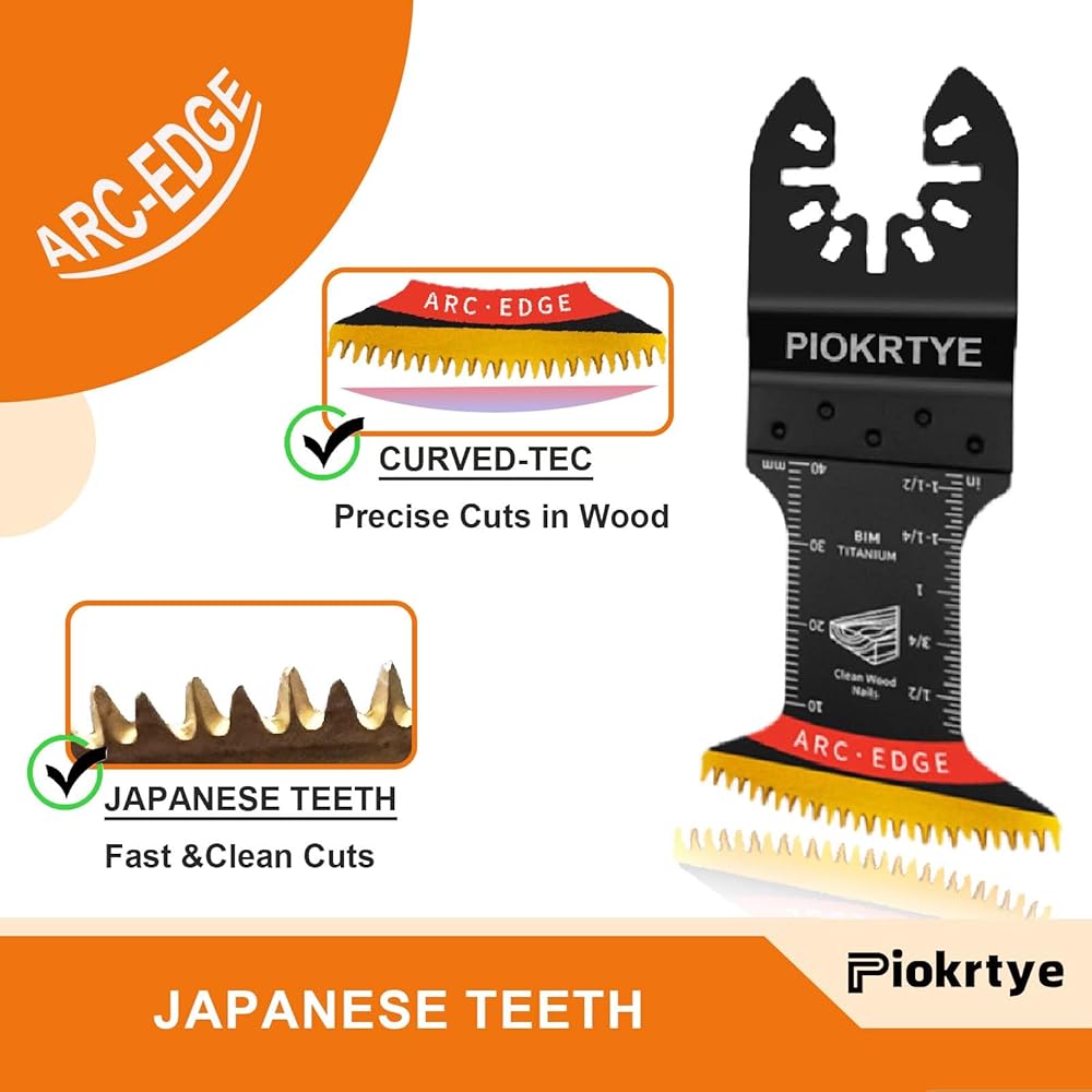 【Curved-Tec Japanese Teeth Design】The innovative curved-edge design of our bi-metal multitool blades for greater control and smooth, precise plunge cuts. Japanese teeth in our multitool blades deliver an exceptionally clean surface for your woodworking project.