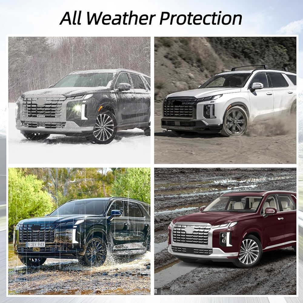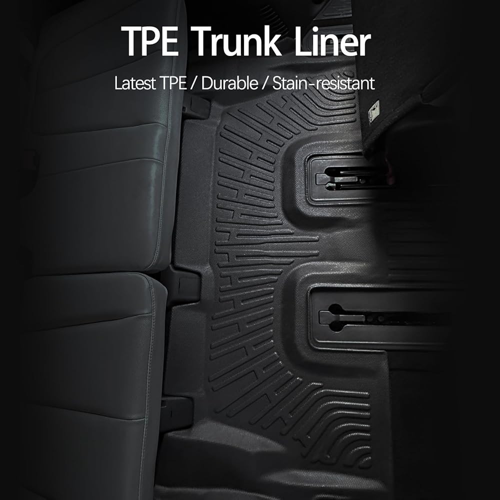2.^-^ Tailored Design: Custom-fit for the 2020-2024 Hyundai Palisade, this 5-piece set of all-weather floor mats and cargo liner ensures a perfect fit for full coverage and protection of your vehicle's interior, encompassing the 1st, 2nd, and 3rd-row flooring as well as the trunk.