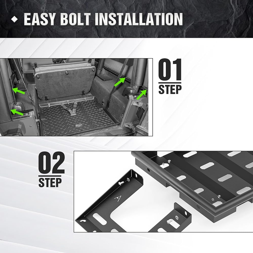 【Easy Installation】: The YZONA Ford Bronco Cargo Basket offers a simple installation process without drilling, complex tools, or the professional skills required. It utilizes bolt-on installation for a secure fit, allowing you to quickly start enjoying the additional load capacity.
