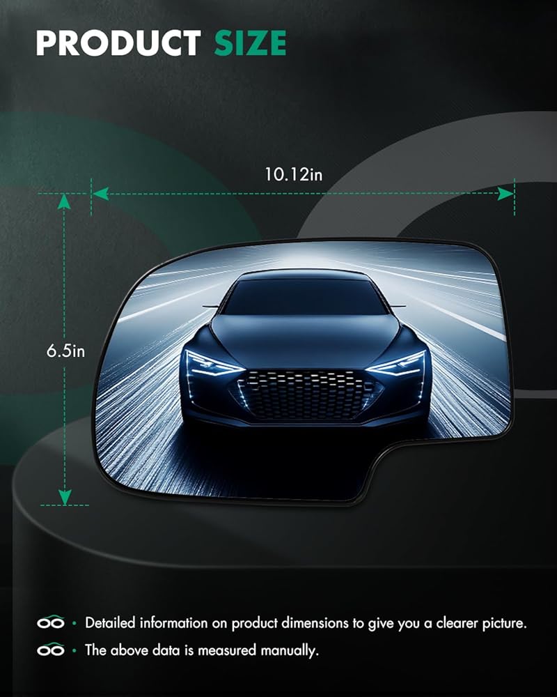 【MEASURE YOUR GLASS】 - This mirror glass measures 10 3/8" diagonally (Longest diagonal dimension from top corner to opposing bottom corner). It is very important to measure your glass to ensure that you are ordering the correct mirror for your vehicle. Also, pay attention to the shape of your mirror and compare to the shape of the replacement mirror. It is common to have SCITOO mirror options for your vehicle's specific make, model, & year.