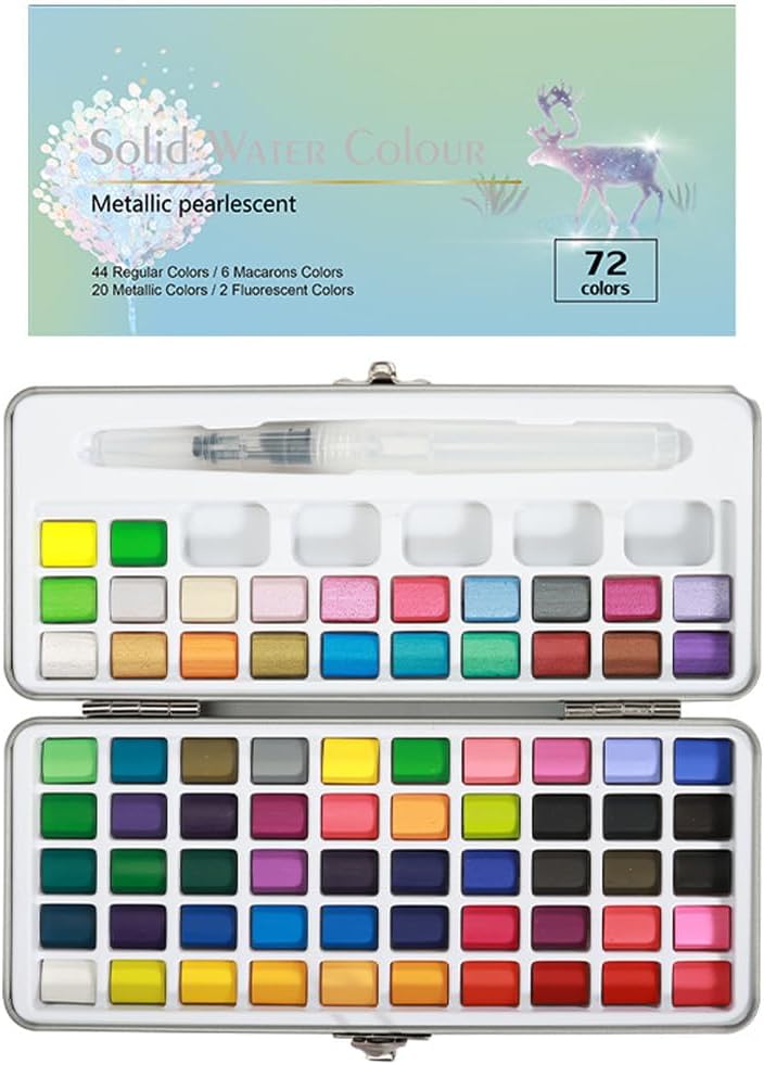 Vibrant Color Selection: Dive into a world of endless possibilities with our 72-color solid watercolor pigment set on Amazon. From bold primaries to subtle pastels, this comprehensive collection offers a diverse range of vibrant hues to unleash your creativity and bring your artistic vision to life.