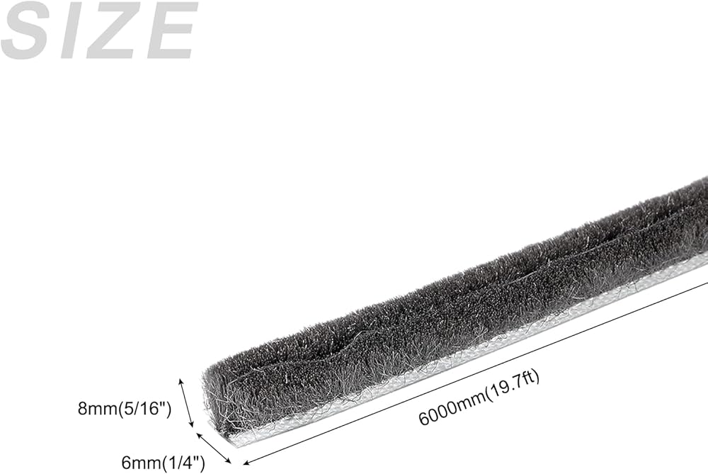 METALLIXITY Brush Seal Weather Stripping (1/4" x1/4" x19.7ft), Card Slot Door Brush Strip W PP Slice - for Sliding Sash Door Window Wardrobe Seal