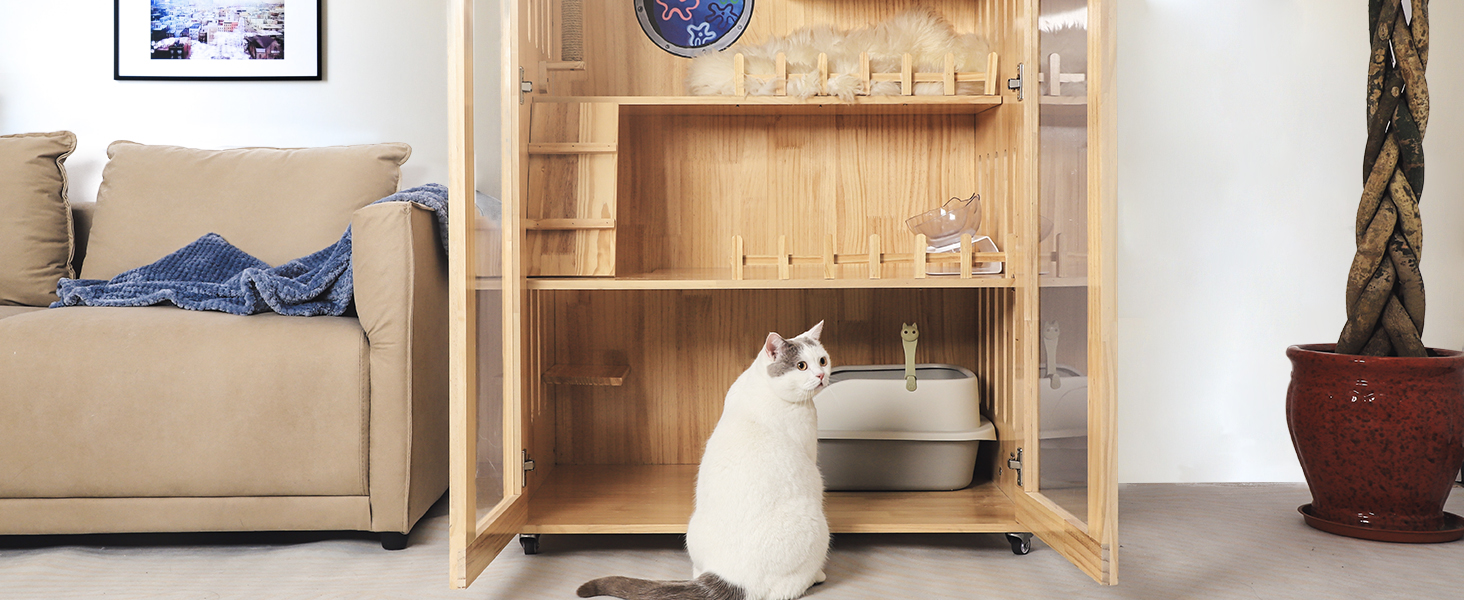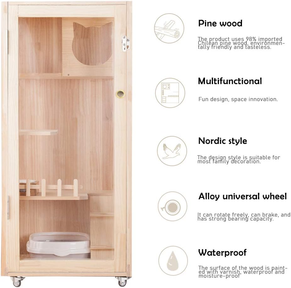 Intimately designed house: The door of the cat villa is made of acrylic material, high-definition, transparent, allowing you to observe the cat;spacious space is comfortable and breathable, allowing your cat to move easily; built-in handle, latch and self-priming device, the bottom is equipped with four TPE silent universal wheels, you can moved and brake;