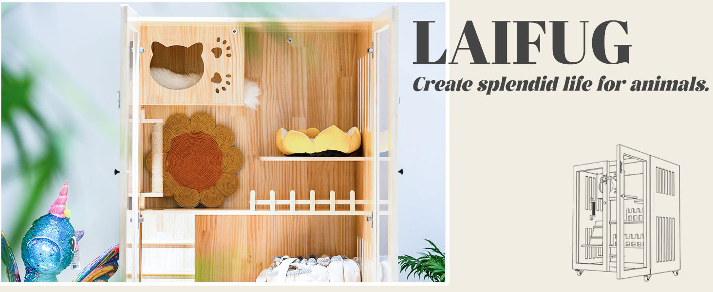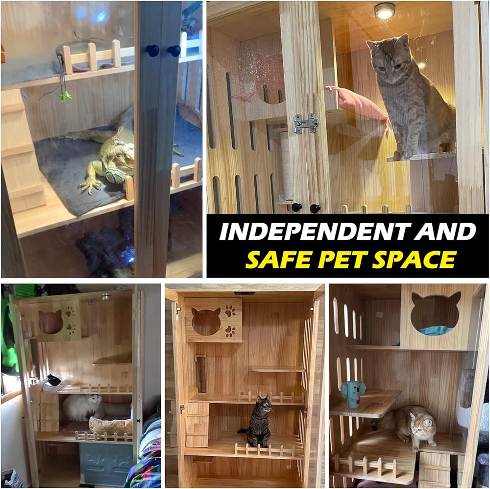 High-quality Cat House: This cat villa is made of natural pine wood, which is non-toxic, harmless and odorless. The thickness of the wooden board is 1.5 cm to make the entire cat villa strong and stable. The surface has been manually polished repeatedly for 20 times. The touch is comfortable and will not harm your Cat;