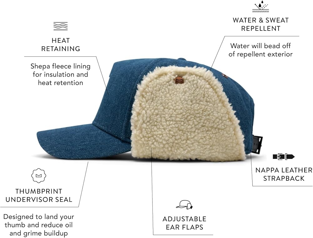 RELENTLESS INNOVATION: A water-resistant denim crown and top visor make this cap eye-catching. Features an undervisor with our signature thumbprint seal to prevent smudging.