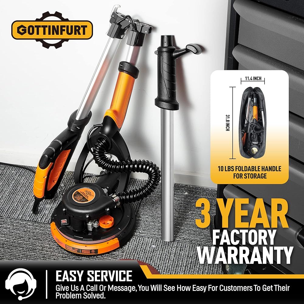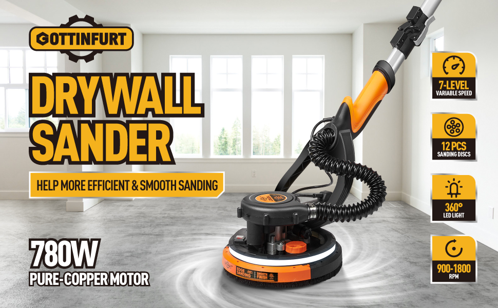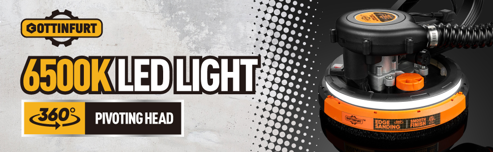 Drywall Sander for Ceiling with Vacuum, Electric Sander 7 Variable Speed 900-1800RPM with 14ft Dust Hose, 26ft Power Cable, LED Light and Storage Bag