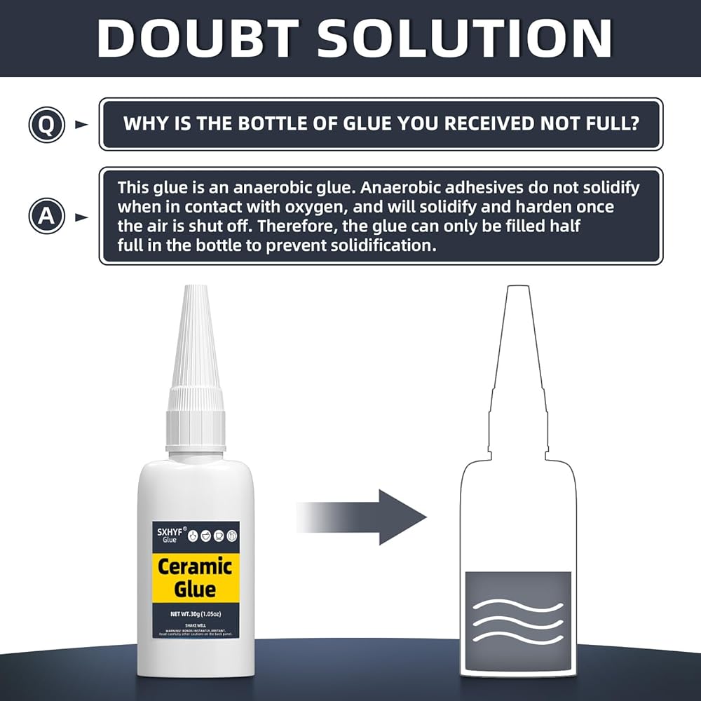 PREMIUM SERVICE AND CONFIDENCE: Your satisfaction is our biggest motivation. If you are not satisfied with the SXhyf ceramic glue you received, or the glue overflows due to the shipping process, please feel free to contact us and we will be happy to provide you with a replacement or refund.