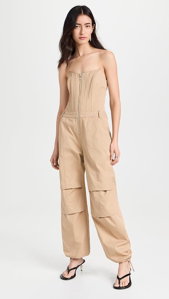 - Boned corset-inspired bodice, Tie cuffs with silver-tone aglets