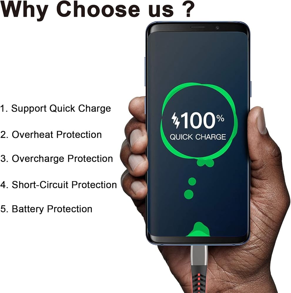 **Universal Compatibility**: Our USB-C Charging Cable works seamlessly with a variety of devices, for Samsung Galaxy (S10, S9, Note 10), LG (G6, G7, V40), Pixel 2 XL, and more. Enjoy fast charging and data syncing with a single versatile cable.