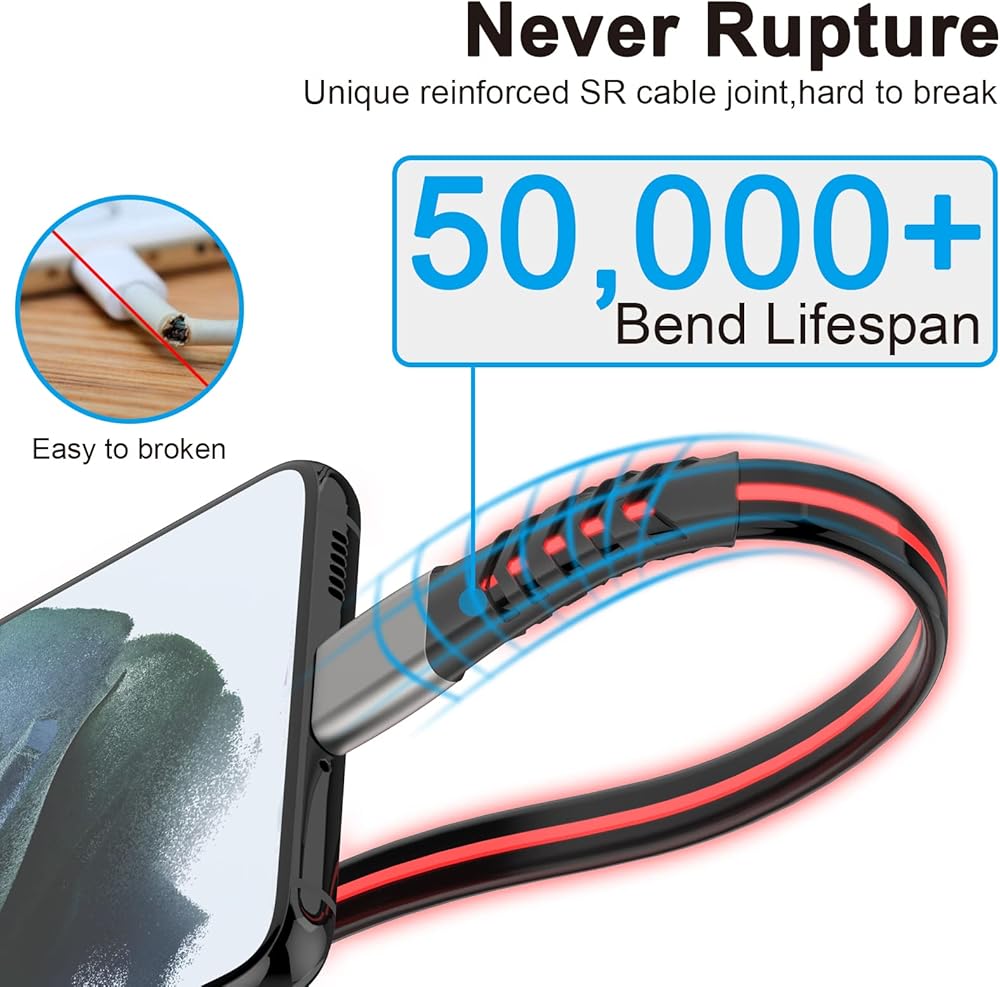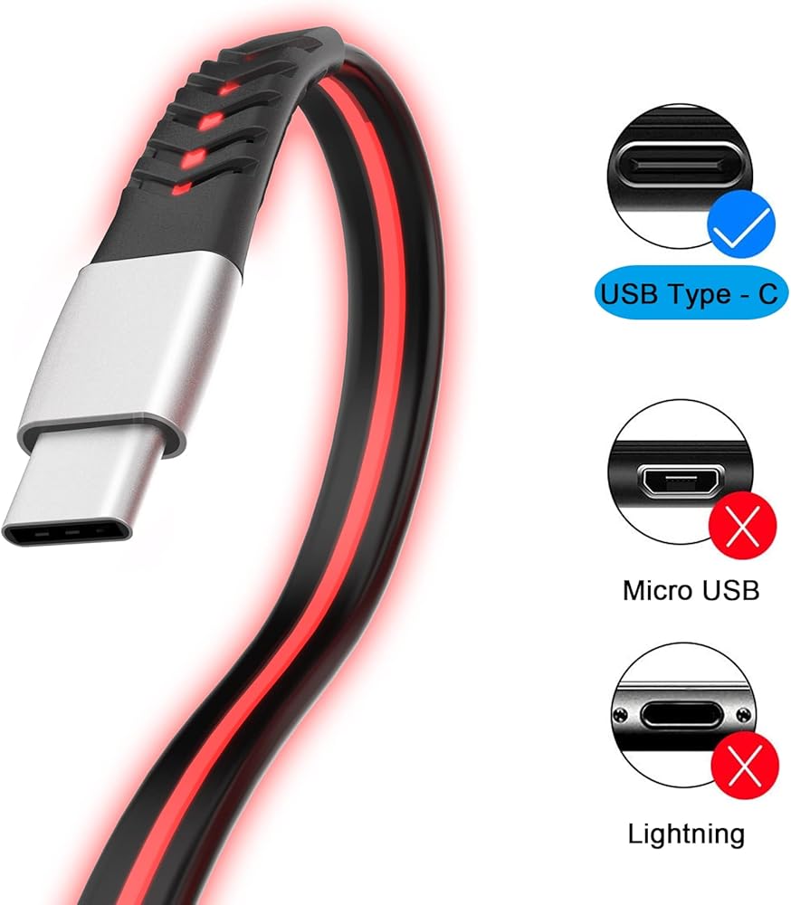 **Eye-catching Charging Experience**: Upgrade your charging routine with USB-C cable featuring a captivating light show. The rhythmic LED lights create a vibrant atmosphere without disturbing others, making charging more enjoyable and stylish.