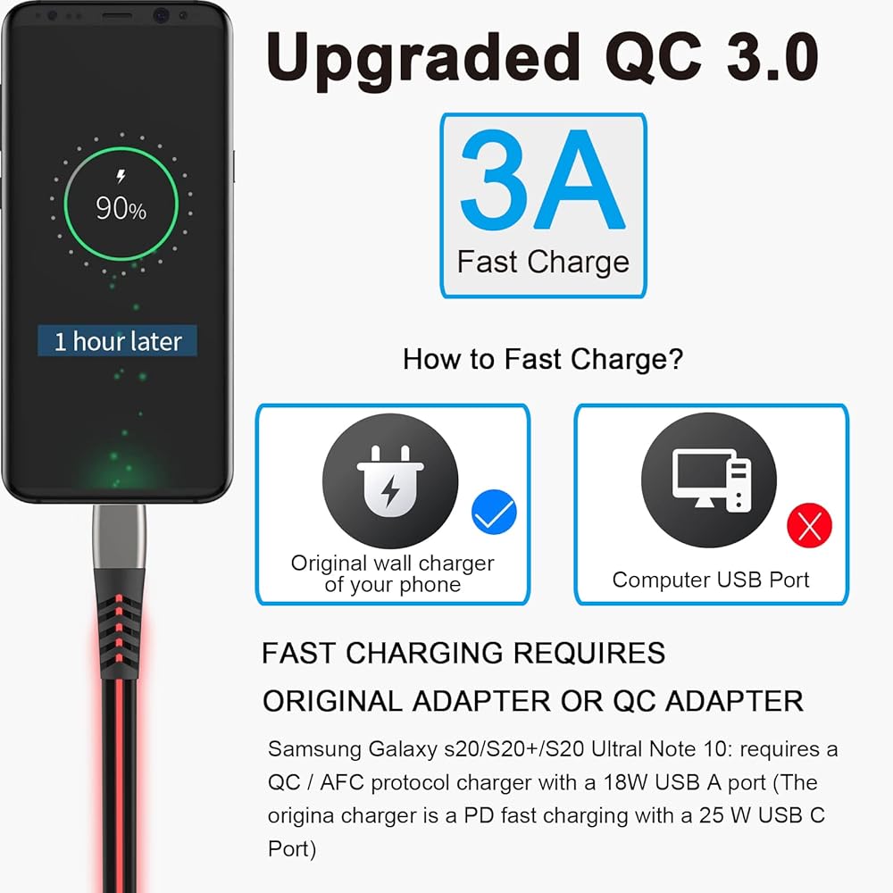 **Fast Charging & Data Sync**: Experience lightning-fast charging and high-speed data transfer with our type c fast charging cable. Powered by QC3.0 technology, it supports 3A charging and data syncing speeds up to 480Mb/s, boosting charging speed by 40% for your devices.
