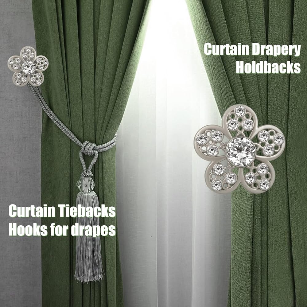 【Excellent Quality】💗 Crystal curtain holdbacks are made of high-quality zinc alloy, solid and heavy weight, rustproof and anti-corrosion to withstand daily use for the years to come. Stylish silver surface polished with burr-free edges, can match any styles drapes well and prevent drapes from scratching.