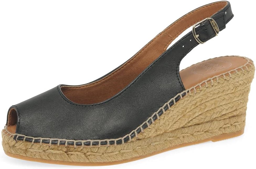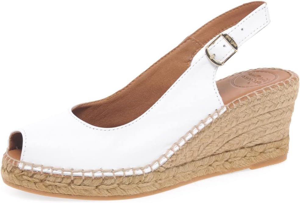 Toni Pons authentic espadrilles are 100% made in Spain using all-natural materials and featuring under-foot cushioning. This sling-back peep-toe style is very flattering.