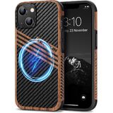 Designed for iPhone 13 cases: One-piece case consists of wood veneer, carbon fiber texture leather and TPU; 3 materials are synthesized; Carbon fiber texture leather and wood grain on the back and shock absorbent TPU rubber inside