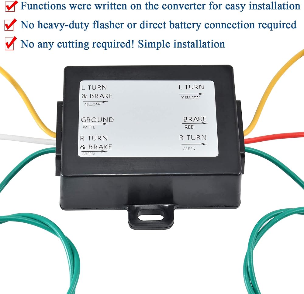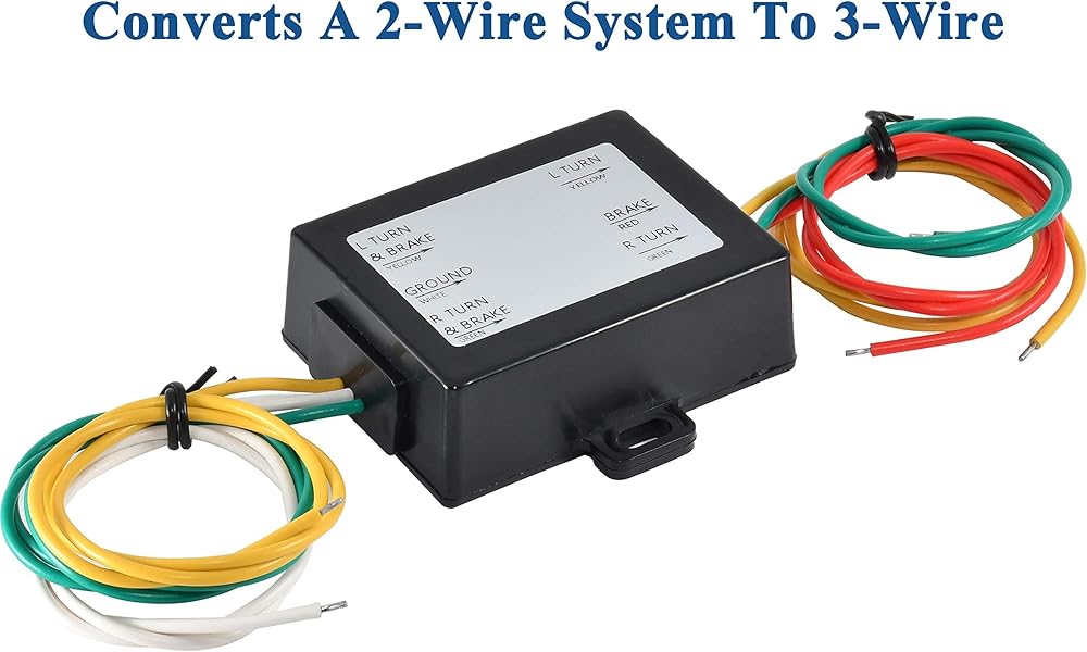 This 2 to 3 Wire Trailer Tail Light Converter converts the 2-wire vehicle electrical system to a standard 3-wire system, allow you to split your brake and turn signals; Compatible with Trailer RV Dinghy Towing Pickup Trucks Vans