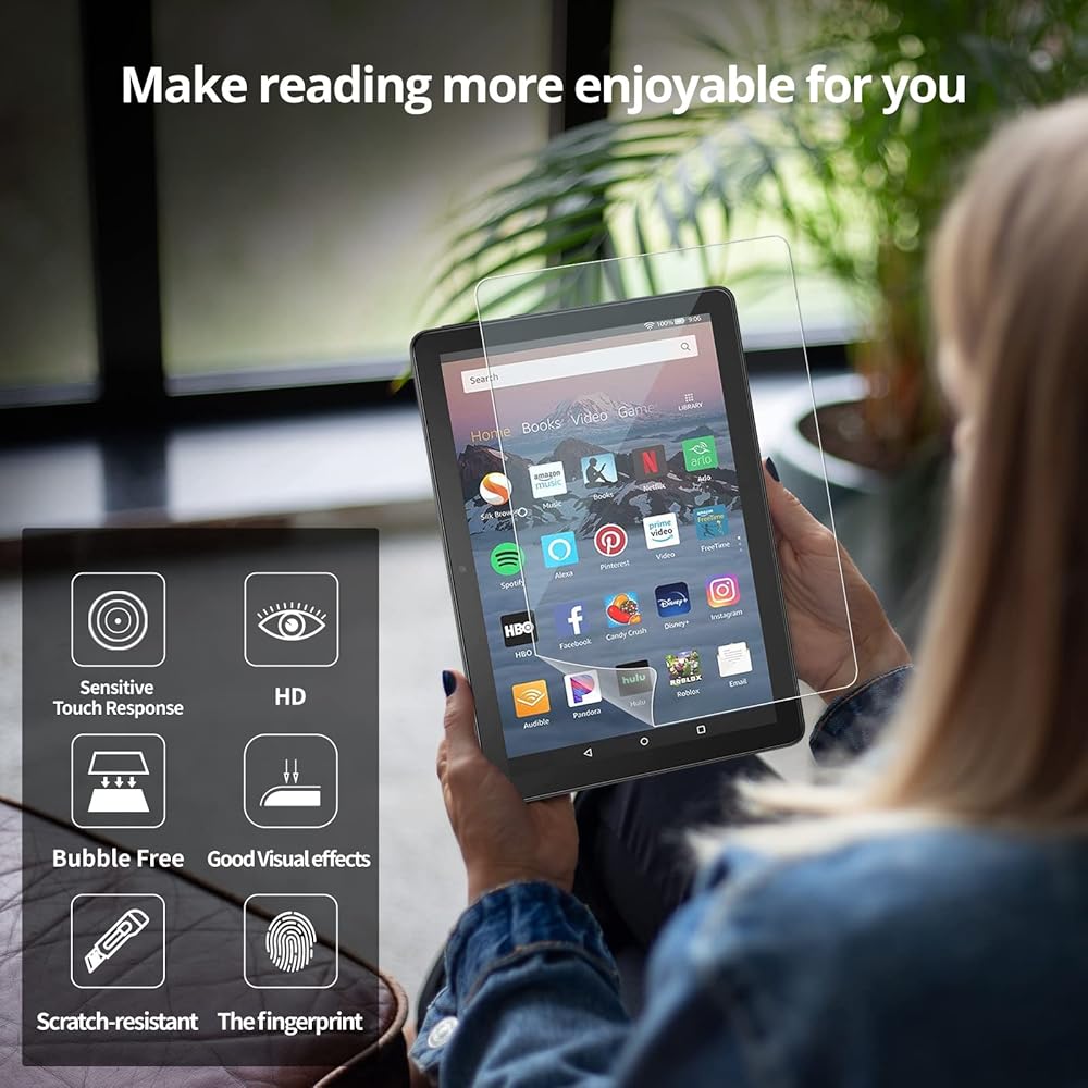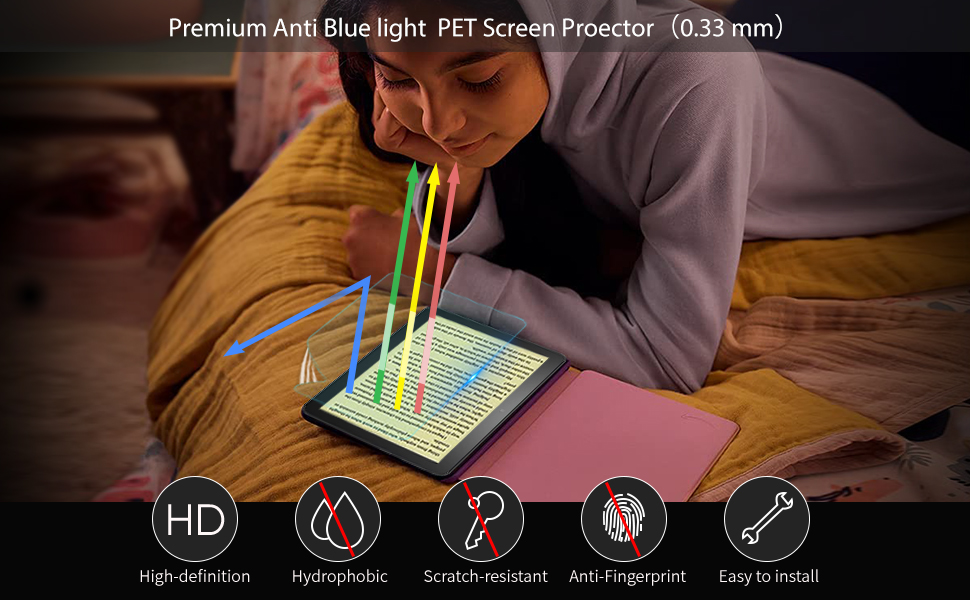 [Anti Blue Light ]This screen protector for kindle fire 8 features the latest blue light filtering technology to block 99.3% of harmful blue light to protect your eyes, making it ideal for children, kids, adults, and anyone who reads for extended periods of time.