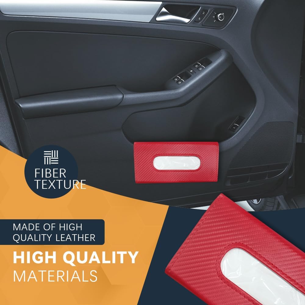 ASUBHA Car Tissue Box Holder, Car Leather Tissue Holder, Car Napkin Holder, Rectangular Car Sun Visor Napkin Box, Visor Tissue Box Holder, Car Hanging Paper Towel Clip for All Cars (red)