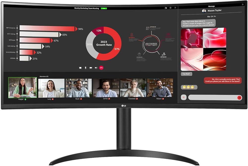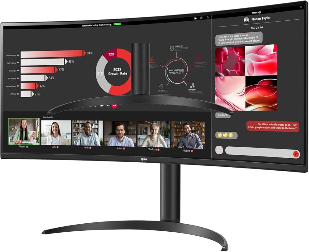 Computer monitor with QHD Display features a wide 21:9 aspect ratio to view multiple documents at once, as well as immerse you in your favorite movies and games