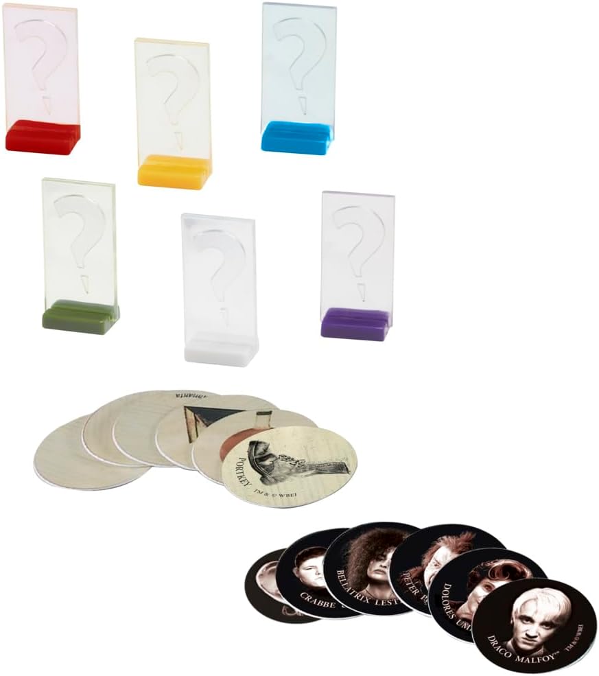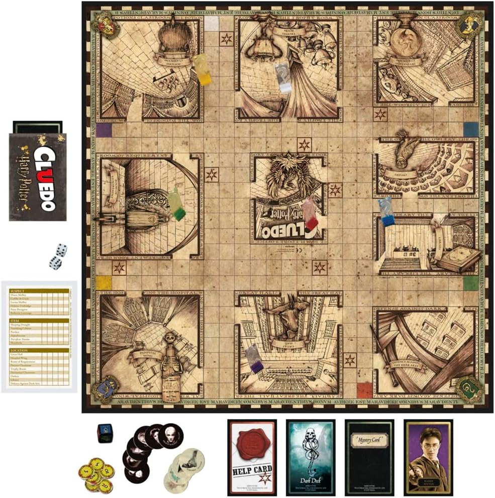 In this Harry Potter Edition of the Clue game, a student has vanished from the Hogwarts School of Witchcraft and Wizardry. Who can solve the mysterious disappearance? Kids play as Harry, Ron, Hermione, Ginny, Luna, or Neville to discover who did it, what spell or item was used, and where the attack happened. Harry Potter fans will recognize the Owlery, Trophy Room, and other Wizarding World places on the Hogwarts gameboard. Rolling a house crest on the Hogwarts die lets the player move a wheel on the board one notch. It'll reveal secret passages, changing staircases, doors that may or may not be available to use, or the Dark Mark may appear. Go from location to location in Hogwarts and narrow down possibilities as other players show their cards. If someone thinks they've solved the case, they head to Dumbledore's office to make an accusation. A correct accusation wins the game. The board game is for kids ages 8 and up.
