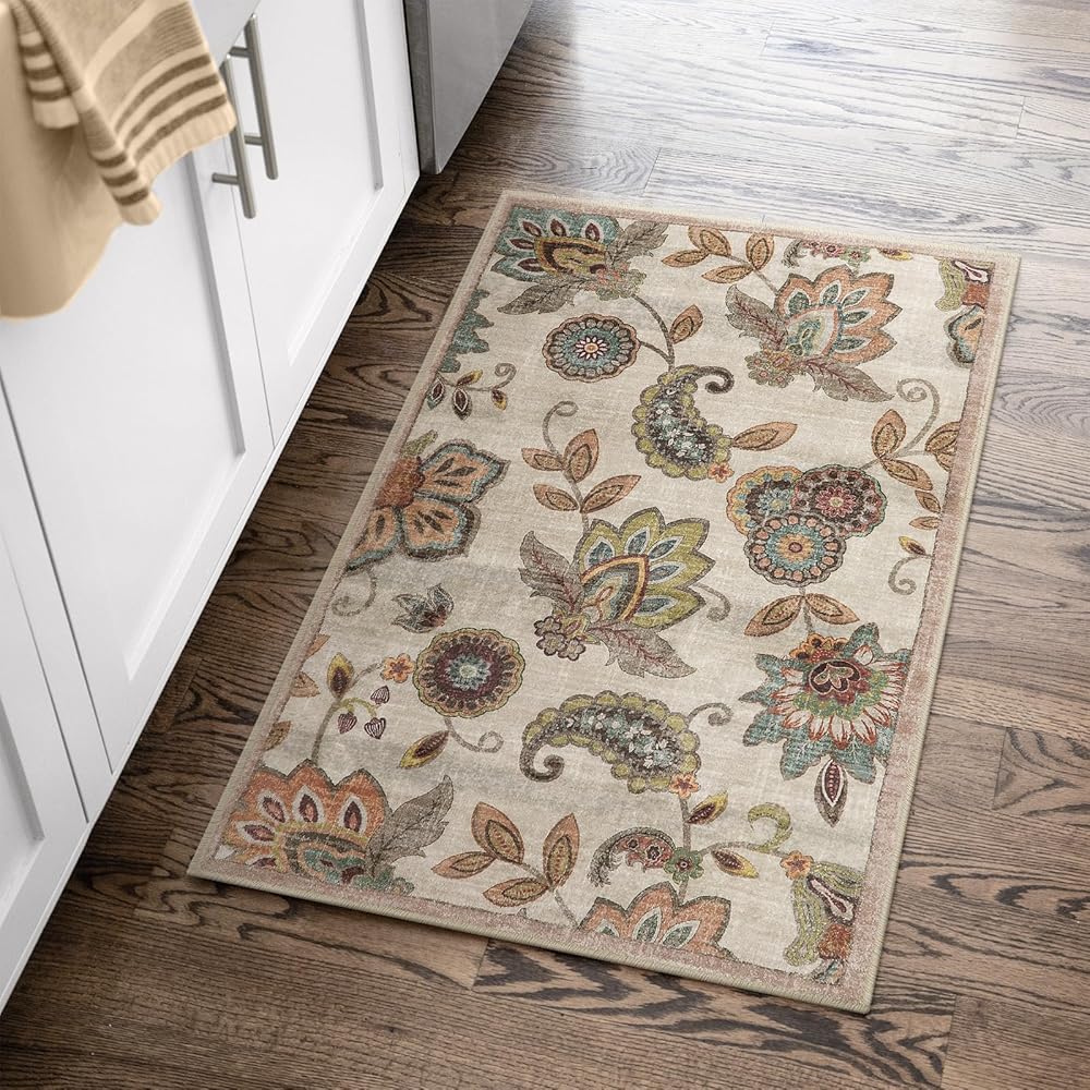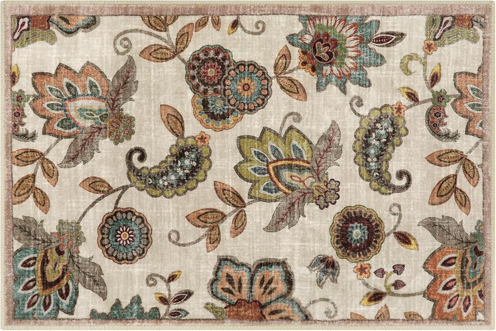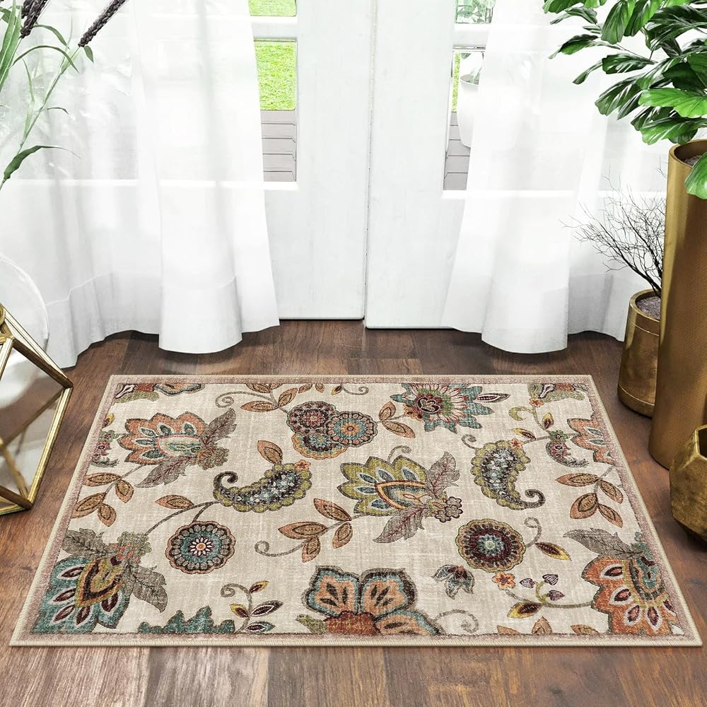 【Eye-catching Design】This vintage rug features a unique, elegant paisley floral pattern printed on a beige, red,blue and brown background. Add a fashionable complement to a living space with this stylish rug that embodies a look that never goes out of style.