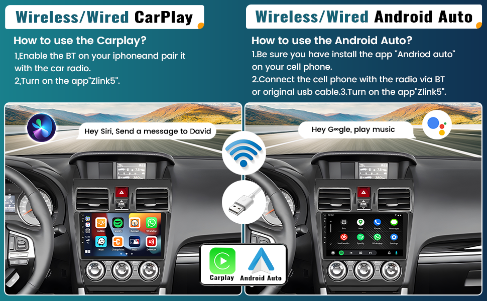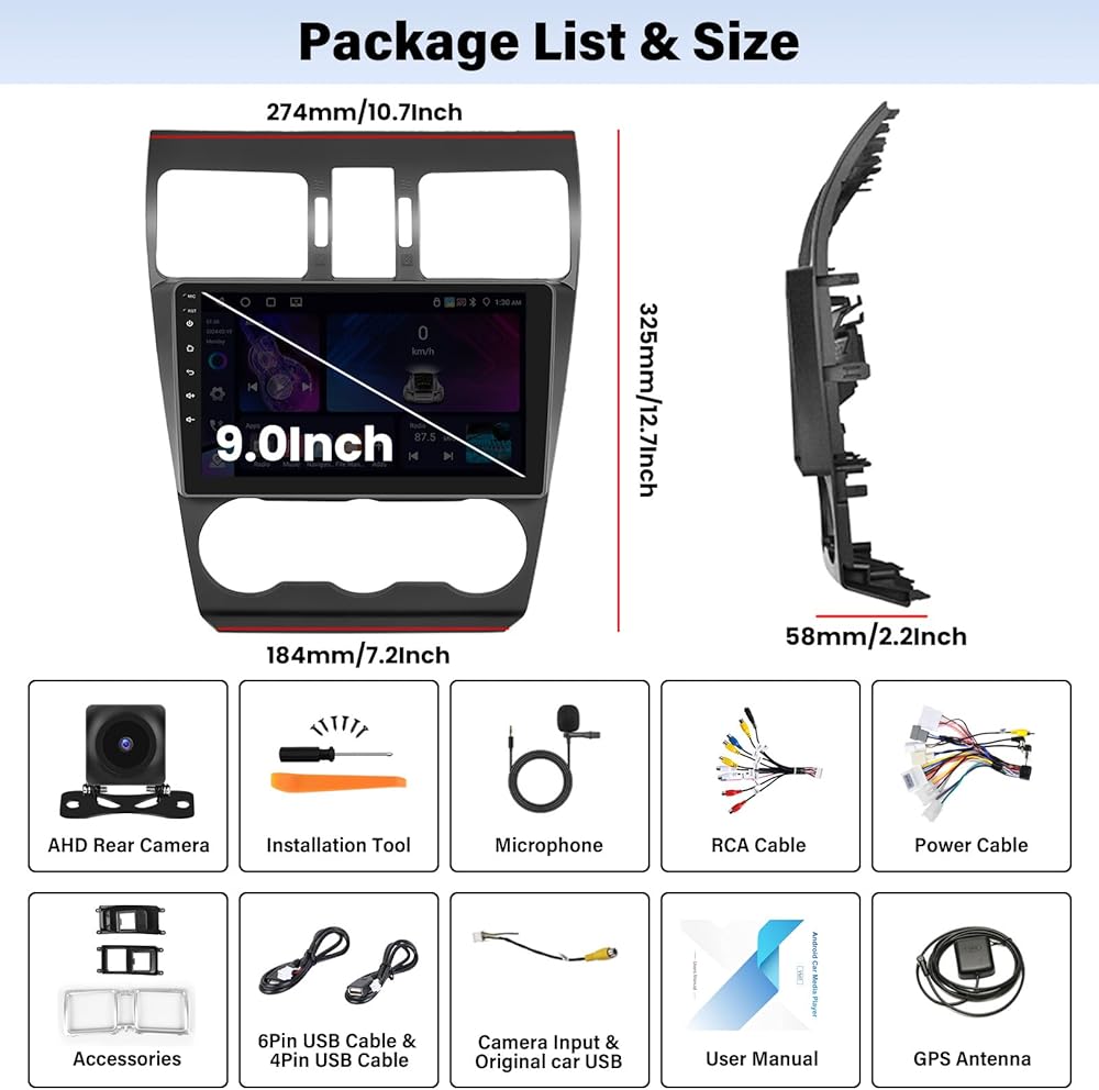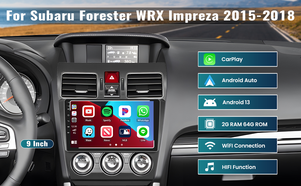 🍎【Wireless Apple CarPlay, Wireless Android Auto】Car Radio for Subaru Forester WRX Impreza 2015 2016 2017 2018 with wireless/wired CarPlay Android Auto voice control, connects the car radio with your smart phone to voice control to access map navigation, phone contacts, music, video and email etc. Double din Android 13 car stereo features quad core processor, 2G RAM, 64G ROM, HiFi Sound Effect, 9 inch HD capacitive touchscreen, WiFi, FM/RDS radio