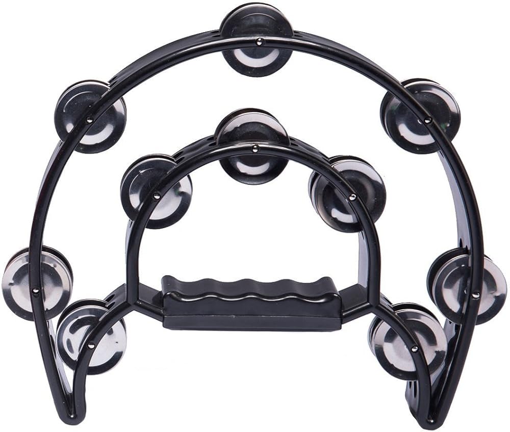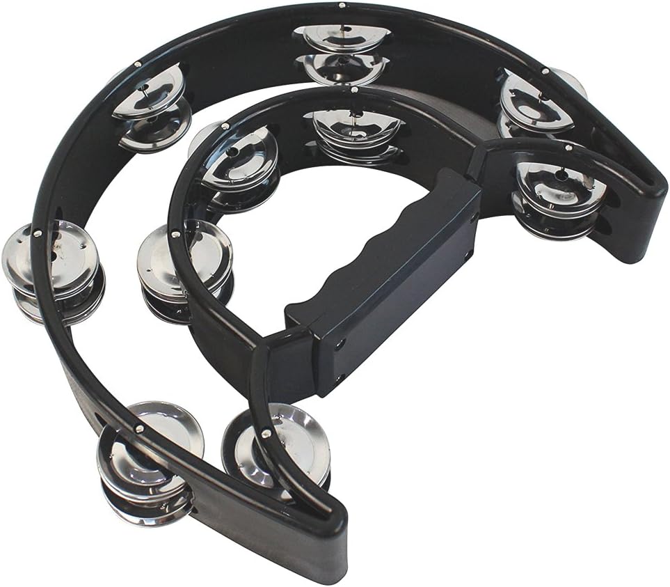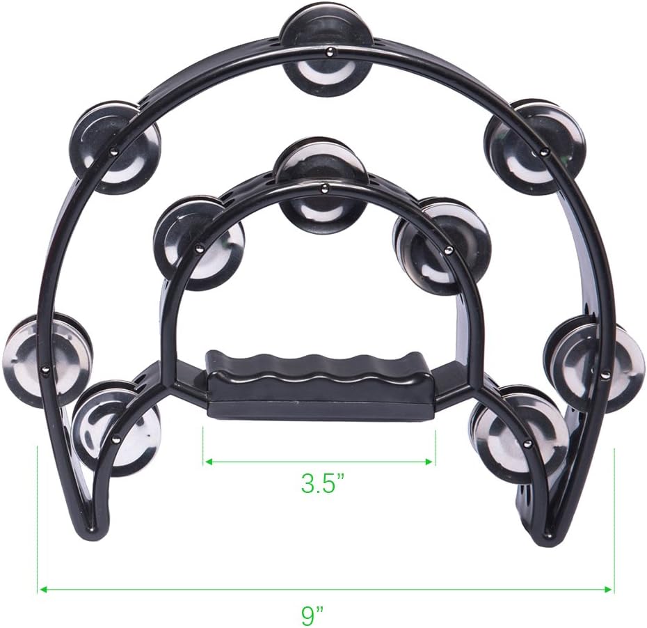 9" Double Row Tambourine - Metal Jingles Hand Held Percussion, Cutaway Design (Black)