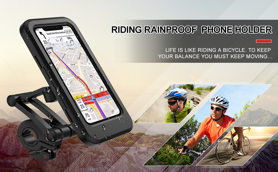 【Waterproof protection】The bike phone mount adopts a fully sealed design,and professional waterproof adhesive tape is used at the sealing and fitting place to provide IPX6 level of waterproof performance.So there is no need to worry that rain, snow,and sand will damage your phone