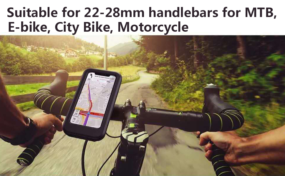 【Main features】Phone Holder for Bike Waterproof,Motorcycle Handlebar Mount,Mountain Bicycle Cellphone Clamp,Scooter Phone Clip Freely Adjustable Height and 360°Rotation ,Suitable for any Smartphone GPS Navigation