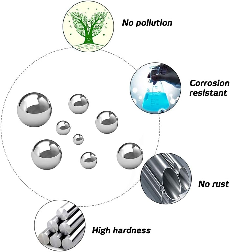 【Exquisite Process】 With fine grinding, each 304 stainless steel bearing ball has fine shape and polished surface. Easy to shape and no cracks.