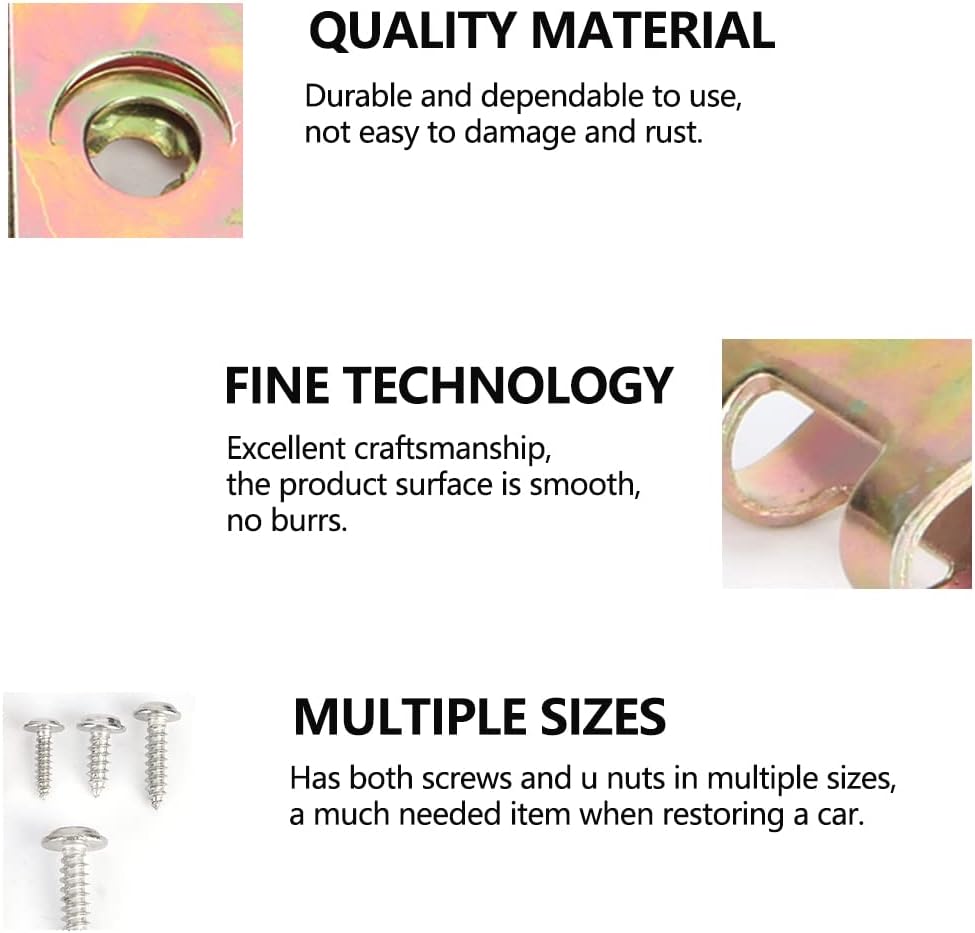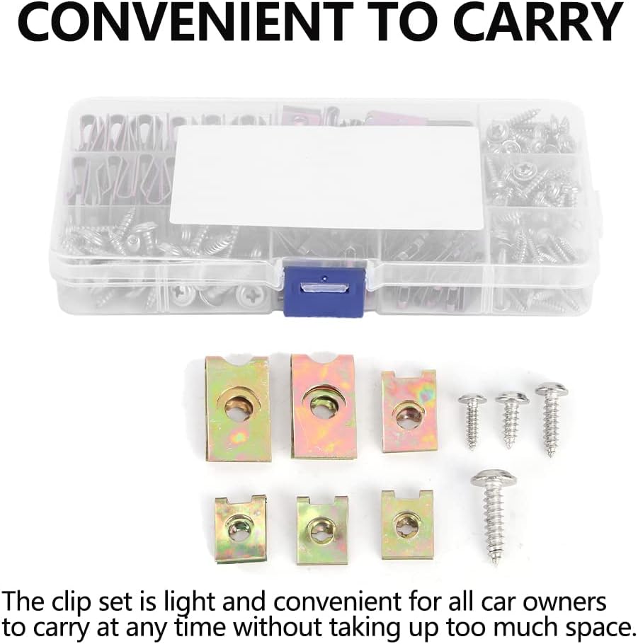 CONVENIENT TO CARRY - The clip set has both screws and u nuts in multiple sizes, a much needed item when restoring a car. The clip set is light and convenient for all car owners to carry at any time without taking up too much space, saved numerous trips to hardware store.