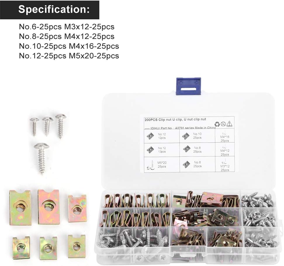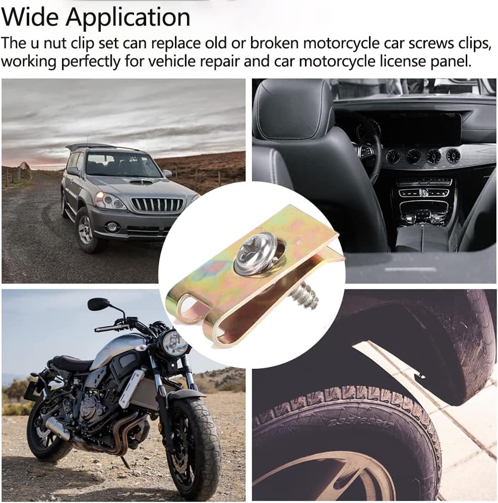 U NUT CLIP SET - The u nut clip set can replace old or broken motorcycle car screws clips, working perfectly for vehicle repair and car motorcycle license panel. Please make sure the correct type and size before purchasing.