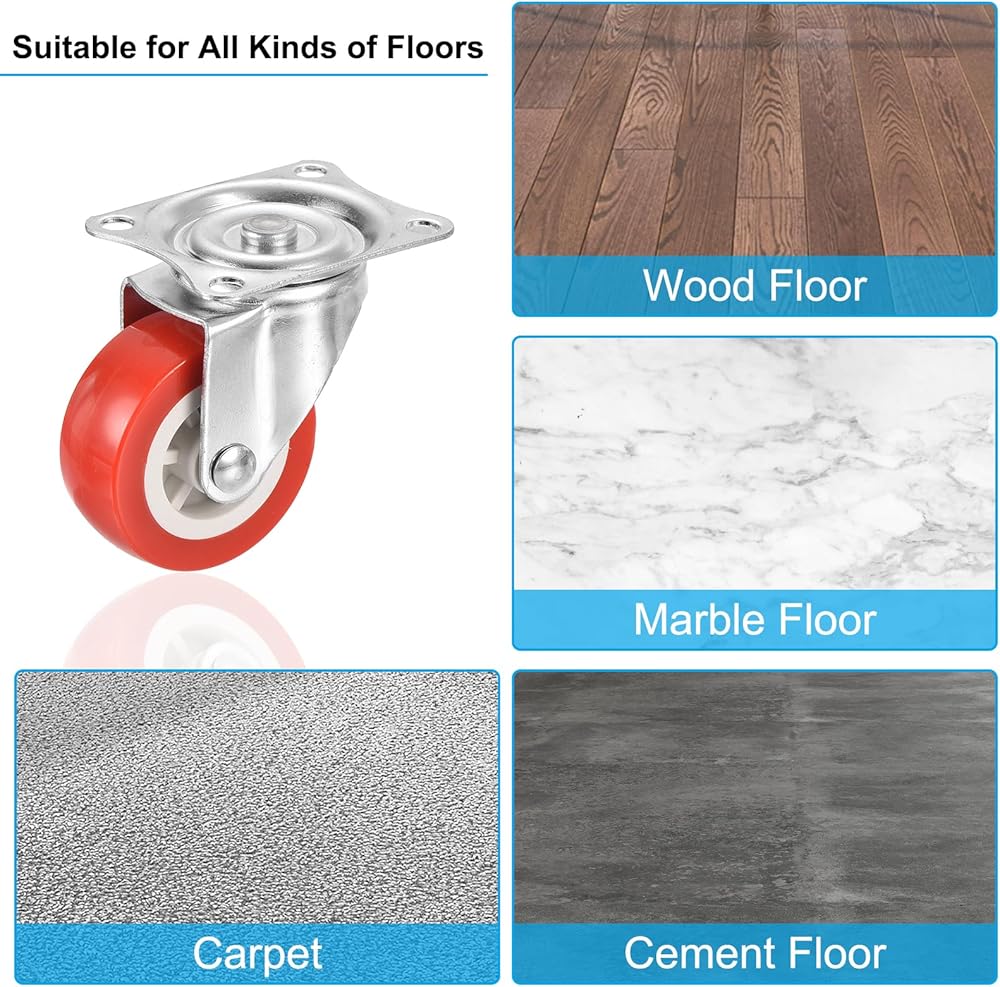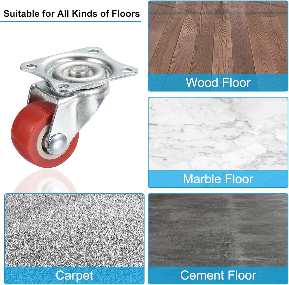 The plate caster wheel fits easily on your furniture and can be used to replace old casters. Suitable for smooth tile floors and rough cement floors. 4 mounting holes, more secure.
