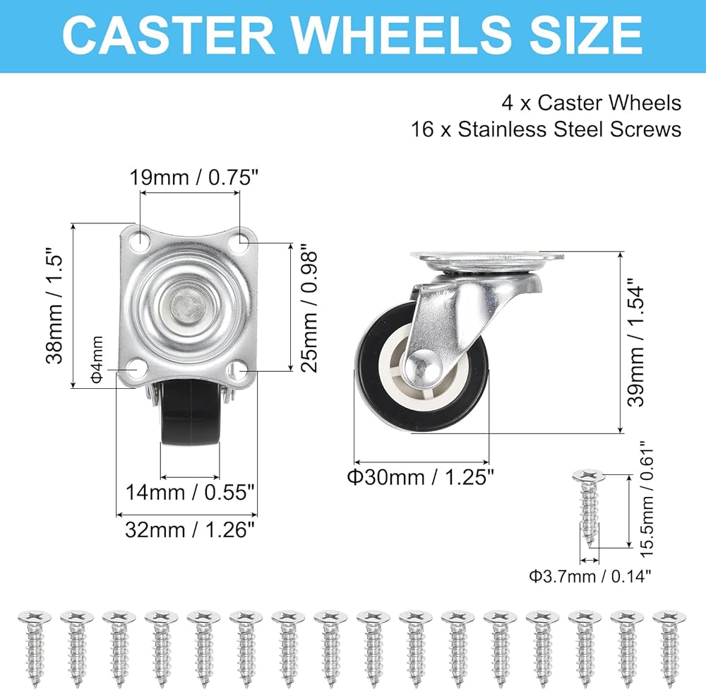 Packing List: 4 x Caster Wheels