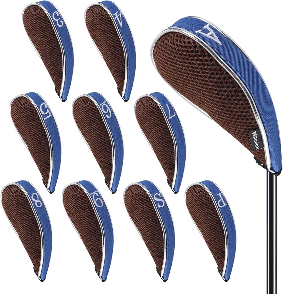 Andux Mesh Golf Iron Club Head Covers with Zipper Left and Right Handed 10pcs/Set