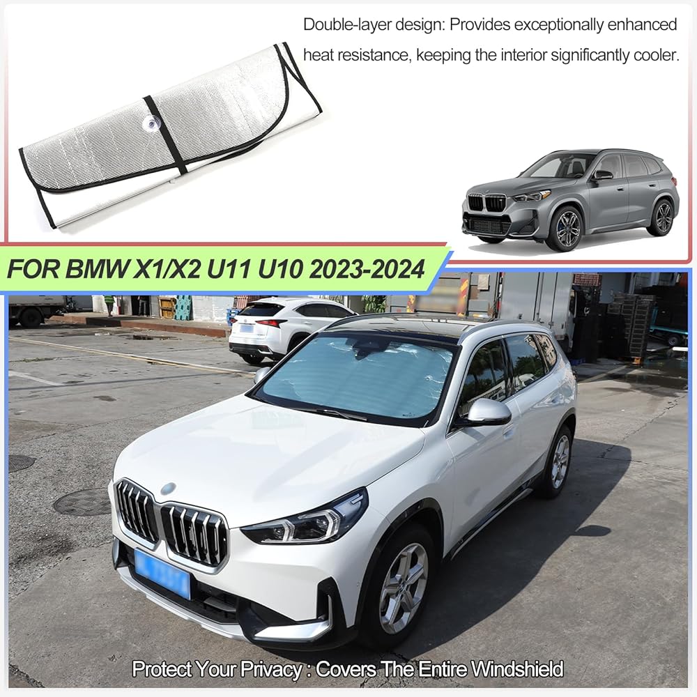 Windshield Sunshade for BMW X1/X2 U11 U10 2023-2024, Front Window Sun Shade, Foldable Reflective Sun Visor, Screen Shield Cover UV Blocker Protector HeatShield