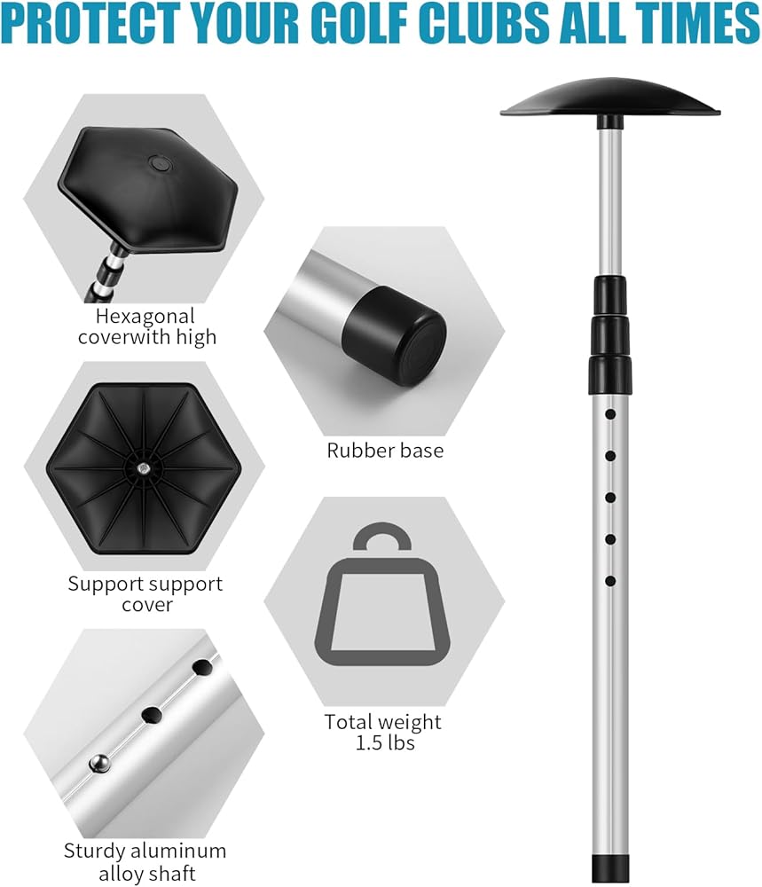 Effortless Handling and Adjustments: Experience convenience with the stiff arm golf club protector. Its user-friendly push button adjustment system offers 12 height settings, allowing you to customize the level of protection. The lightweight aluminum construction and 4 telescoping sections make collapsing and expanding the rod a breeze, providing you with effortless club security throughout your travels.