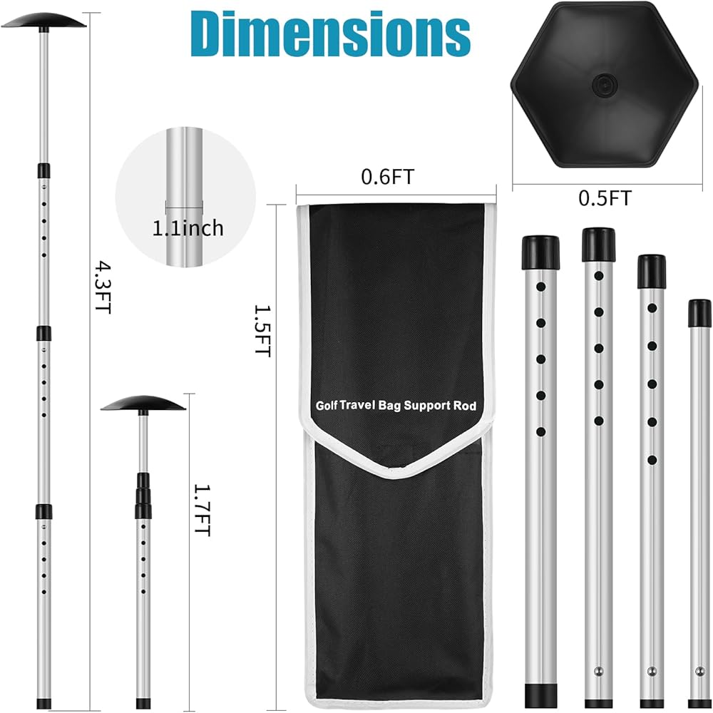 Adjustable and Portable Design: Crafted from high-strength aluminum alloy, this support rod offers exceptional durability and versatility. With its adjustable length, it can extend up to 52 inches, while collapsing down to a portable size of 19 inches, ensuring a perfect fit in any golf travel bag and effortless storage.