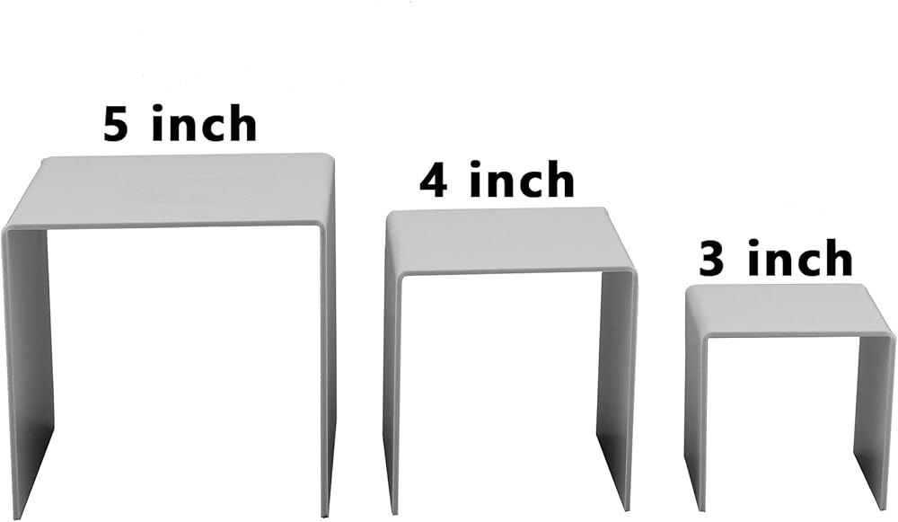 - 3 different level (3” 4” & 5”) risers great for eye catching interesting display in any showcase, shelves or tabletop at home or business.