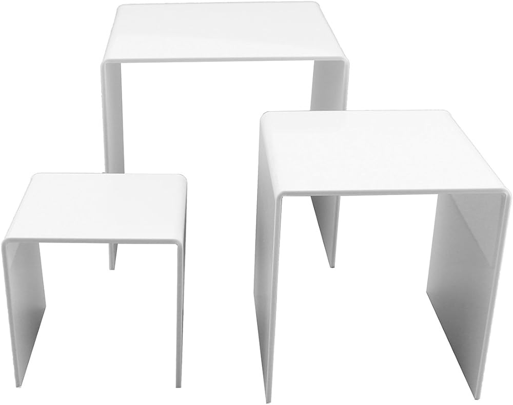 - Set of 3 small cubic acrylic nesting risers in 3 sizes (3”x3”x3” 4”x4”x4” & 5”x5”x5”) for different display items in parties or events.