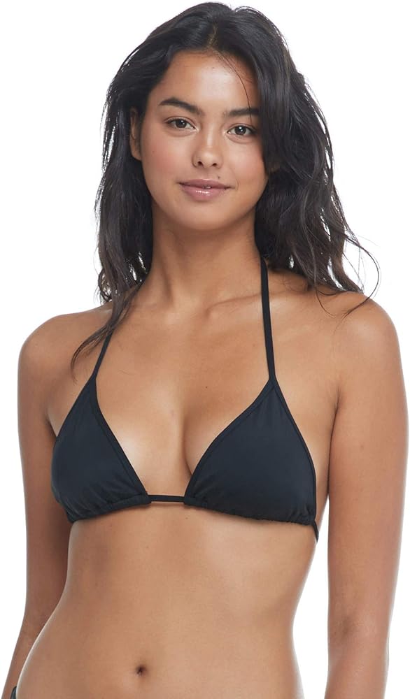 The Kali bikini top is a new take on our classic triangle bikini top. This smaller coverage paneled triangle slider top has a soft adjustable neck, back ties for comfort, and removable soft cups.