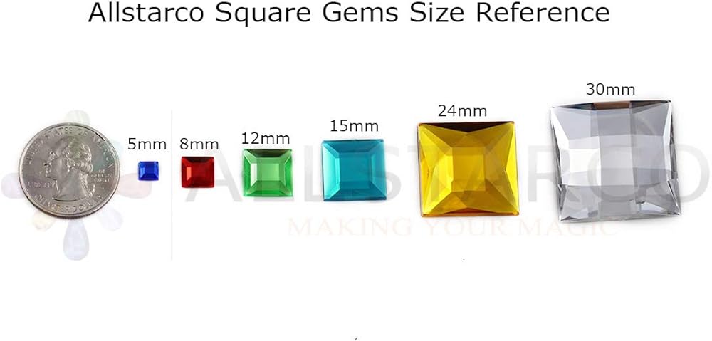- 14 Pieces of Square Acrylic (Plastic) Flat Back Rhinestones are 24mm or about 1" diameter.