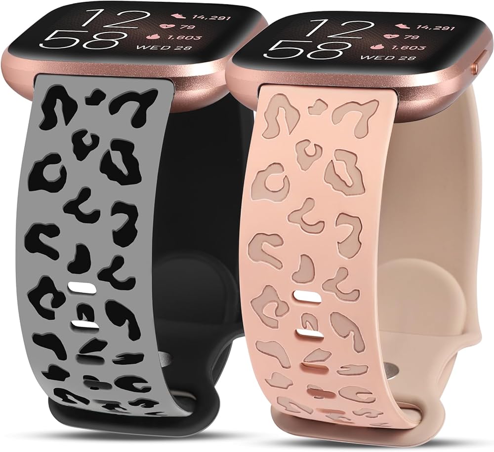 【Newest Two-Tone Design】This fancy Versa 2 band features the newest Two-Tone design, which makes the Leopard print engraving clearer, more vivid, more three-dimensional, and more beautiful, and for a striking visual effect. Personalize your watch to fit your mood and outfit in daily life, please believe it is unique.