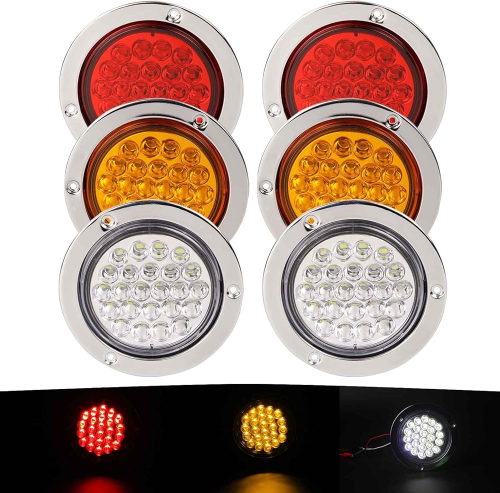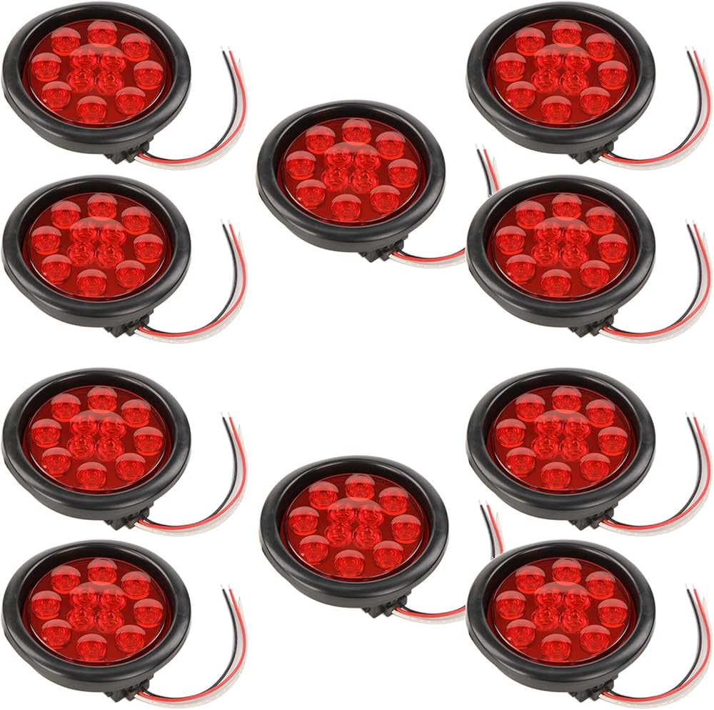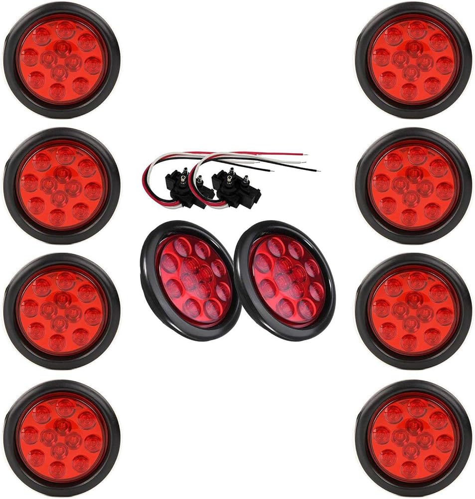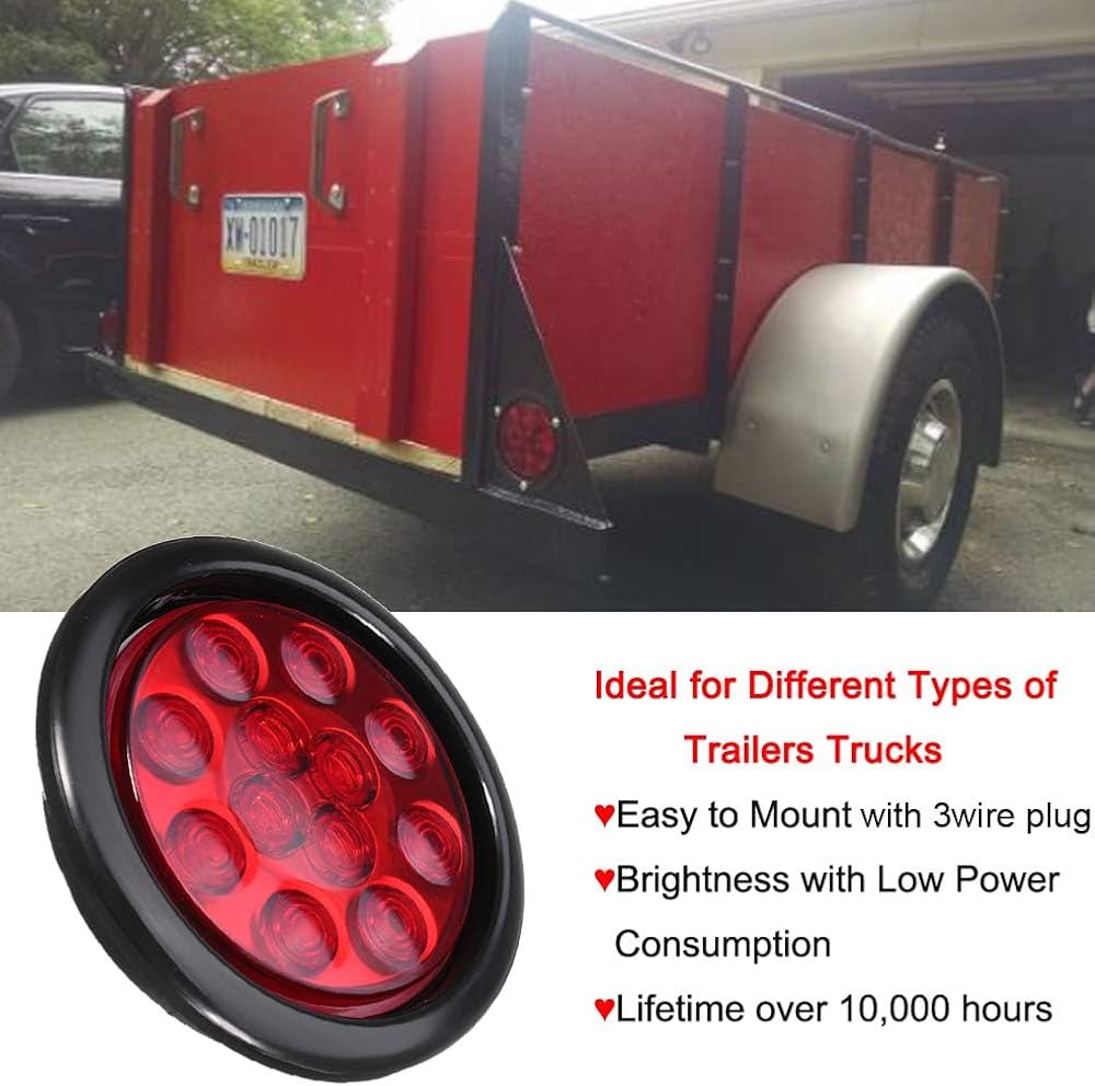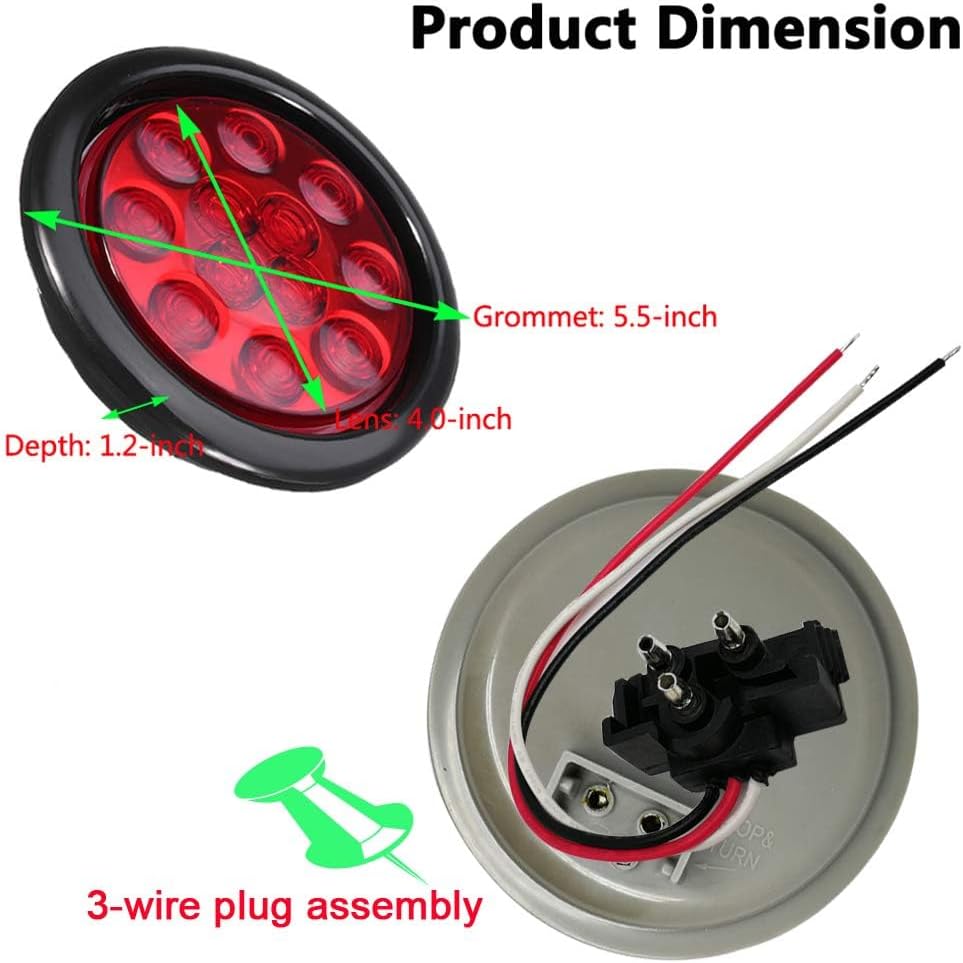 Illuminate the road with NEWSUN 4 Inch LED Trailer Light Kit: Includes 2 red tail lights for stop/turn signals and 2 white fog/back-up lights, complete with rubber grommets and 3-prong wire pigtails for a seamless installation.