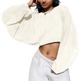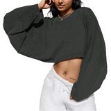 LovelyWholesale Long Sleeve Crop Tops for Women Oversized Crew Neck Workout Cropped Sweatshirt