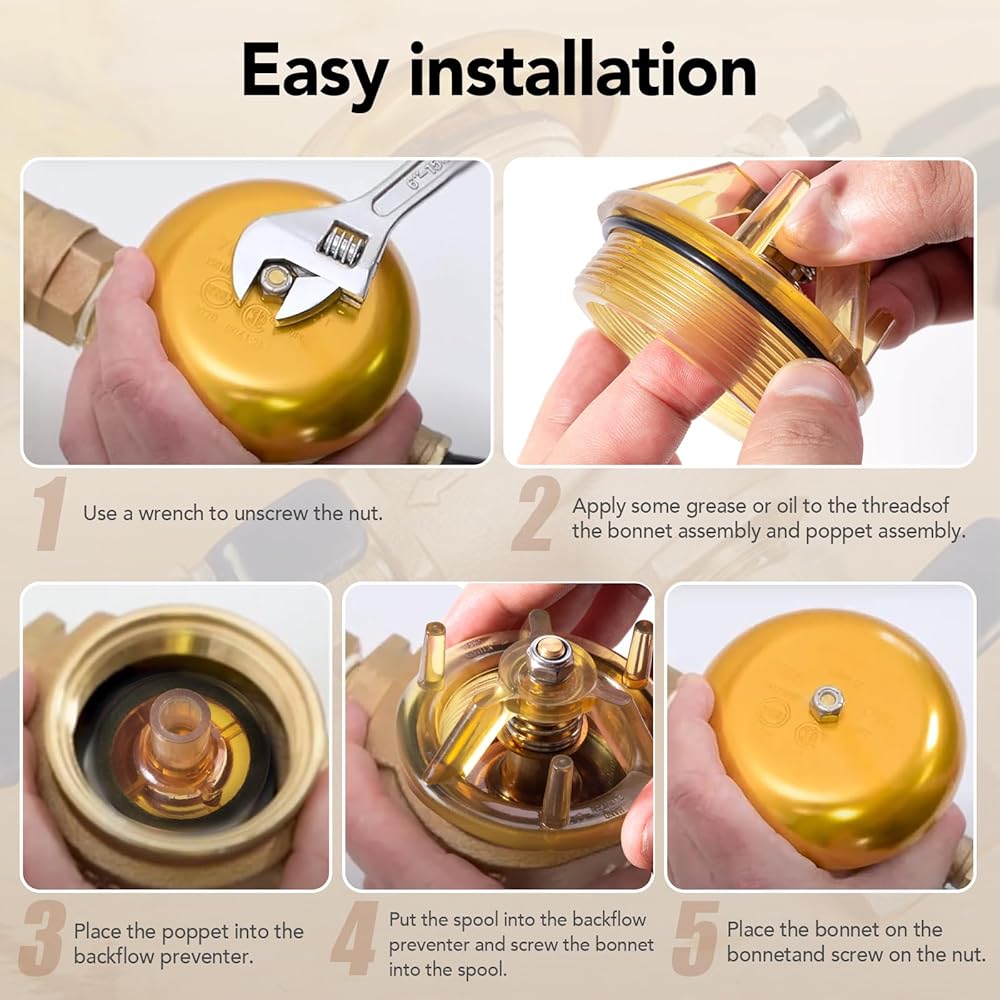 【Easy Installation】Before replace the backflow preventer, please turn off the water supply first.Pressure vacuum breaker replacement parts are serviceable from the top of the unit. Get the job done in a matter of minutes, requiring no special tools.