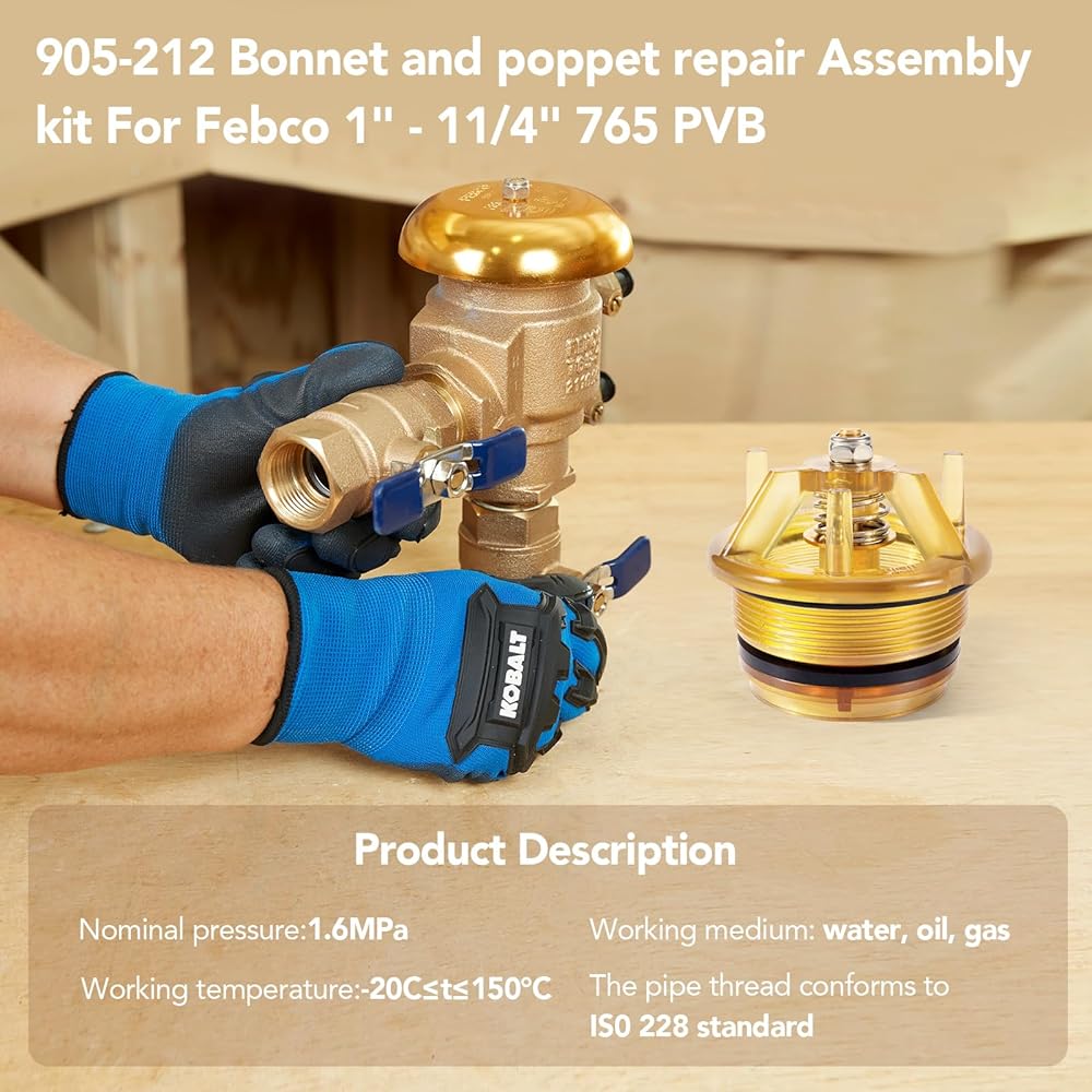 【Function】Bonnet and poppet repair kit pefect fit for FEBCO 765 1"and 1-1/4"pressure vacuum breakers;Seals the air in minimal flow scenarios, quickly fix water spillage, waste and freeze.Timely replacement parts ensures original high-quality performance