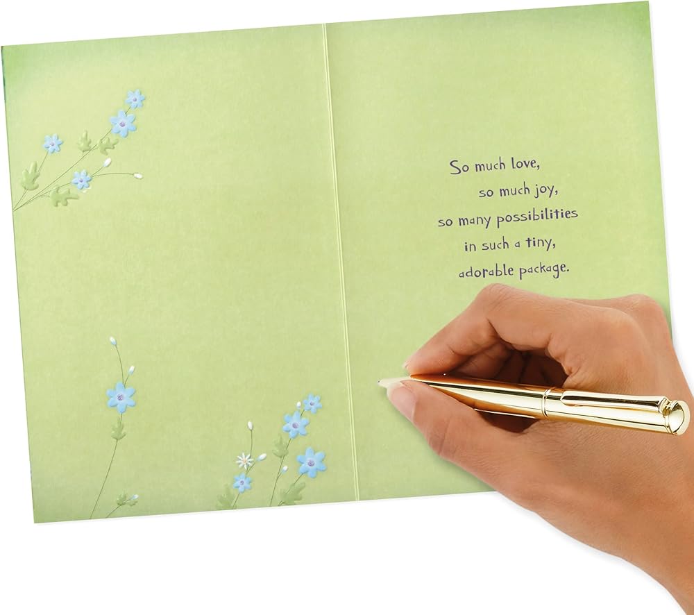 Inside message: So much love, so much joy, so many possibilities in such a tiny, adorable package.