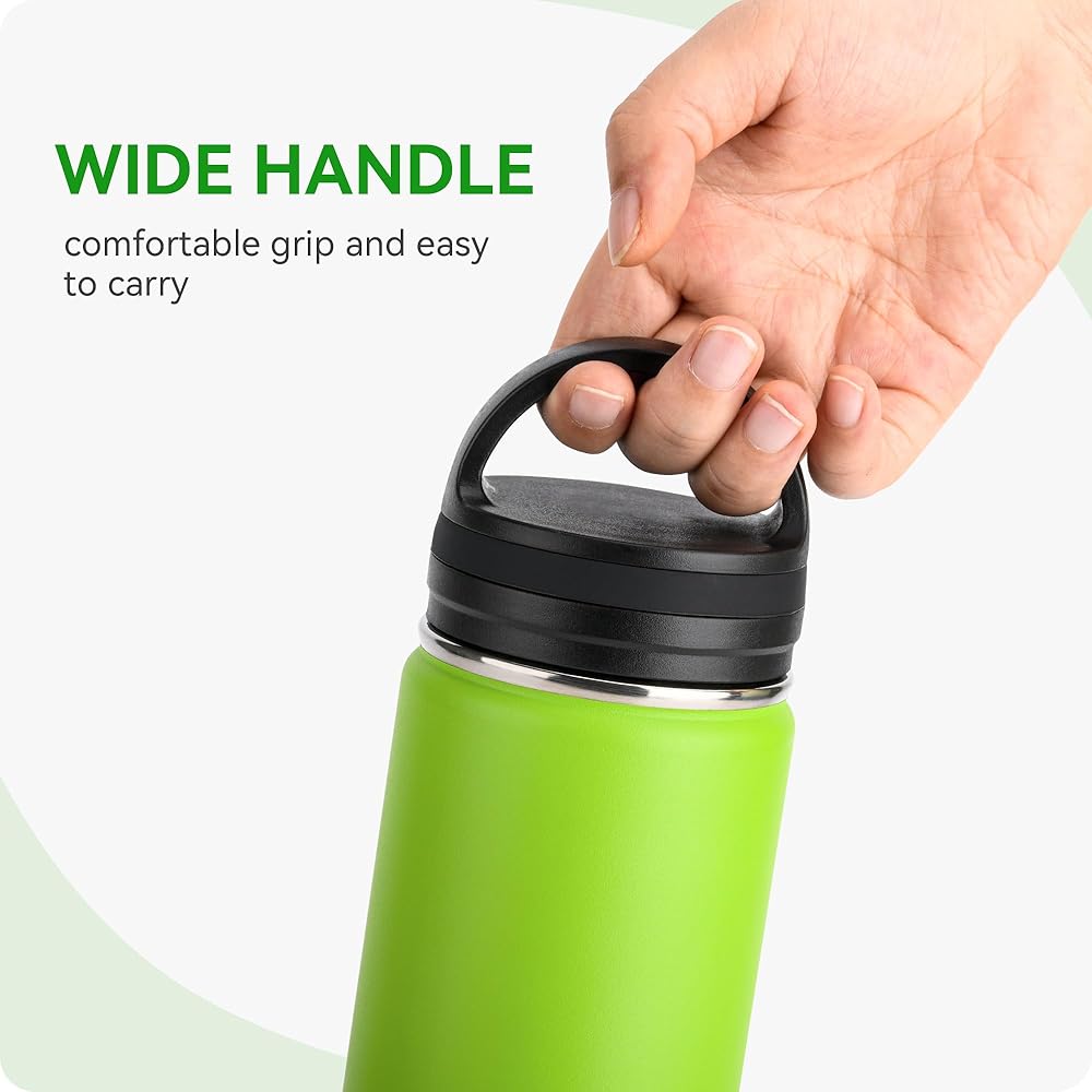 【Wide Handle】Three finger wide handle, ergonomic and comfortable to grip. Our Wide Mouth bottle lid makes hydration on-the-go a breeze.