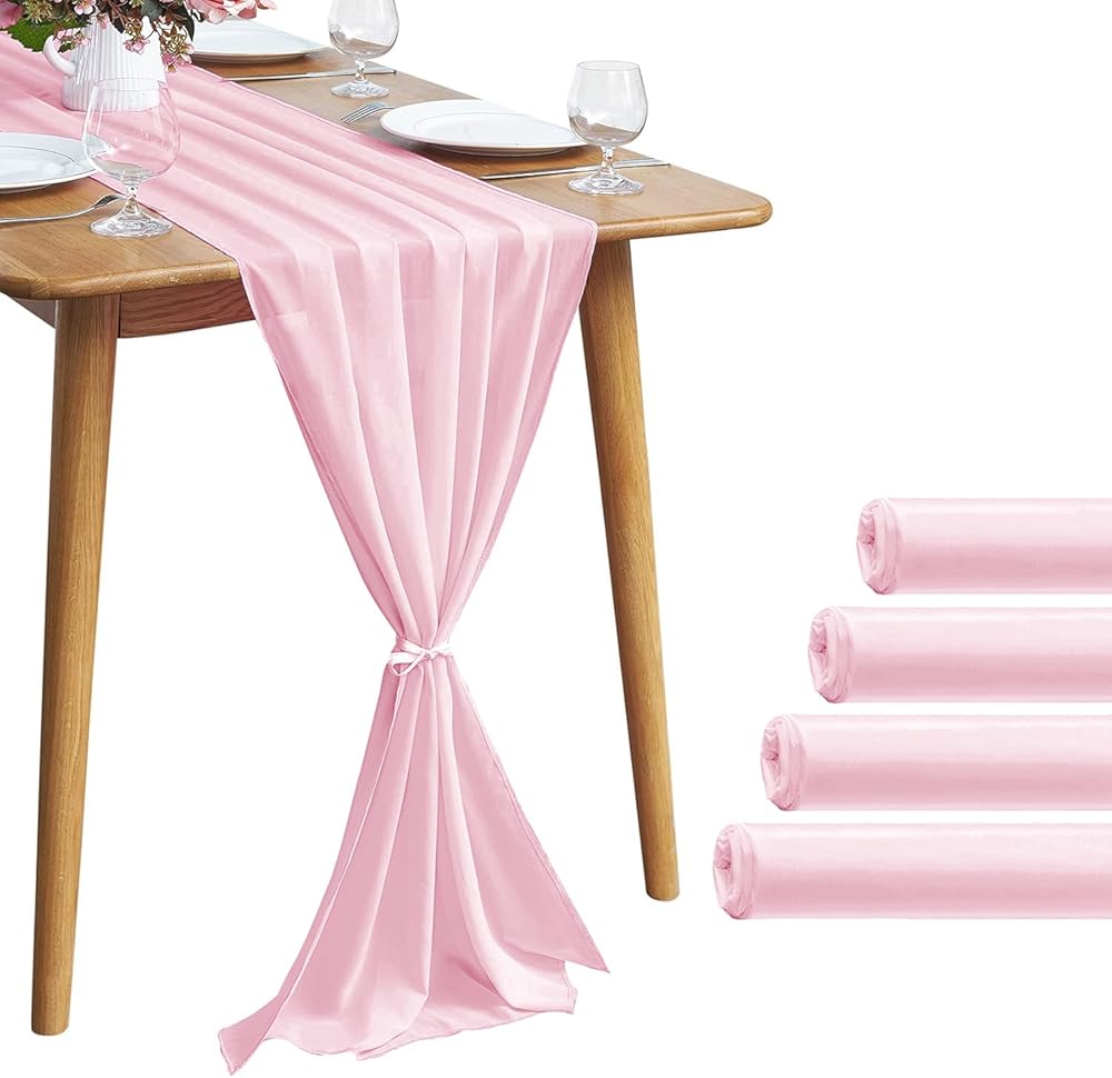Size: The 29 inch x120 inch (10 feet) sheer chiffon table runner is suitable for 6ft either round or rectangle table, if you want the effect of hanging to the floor.