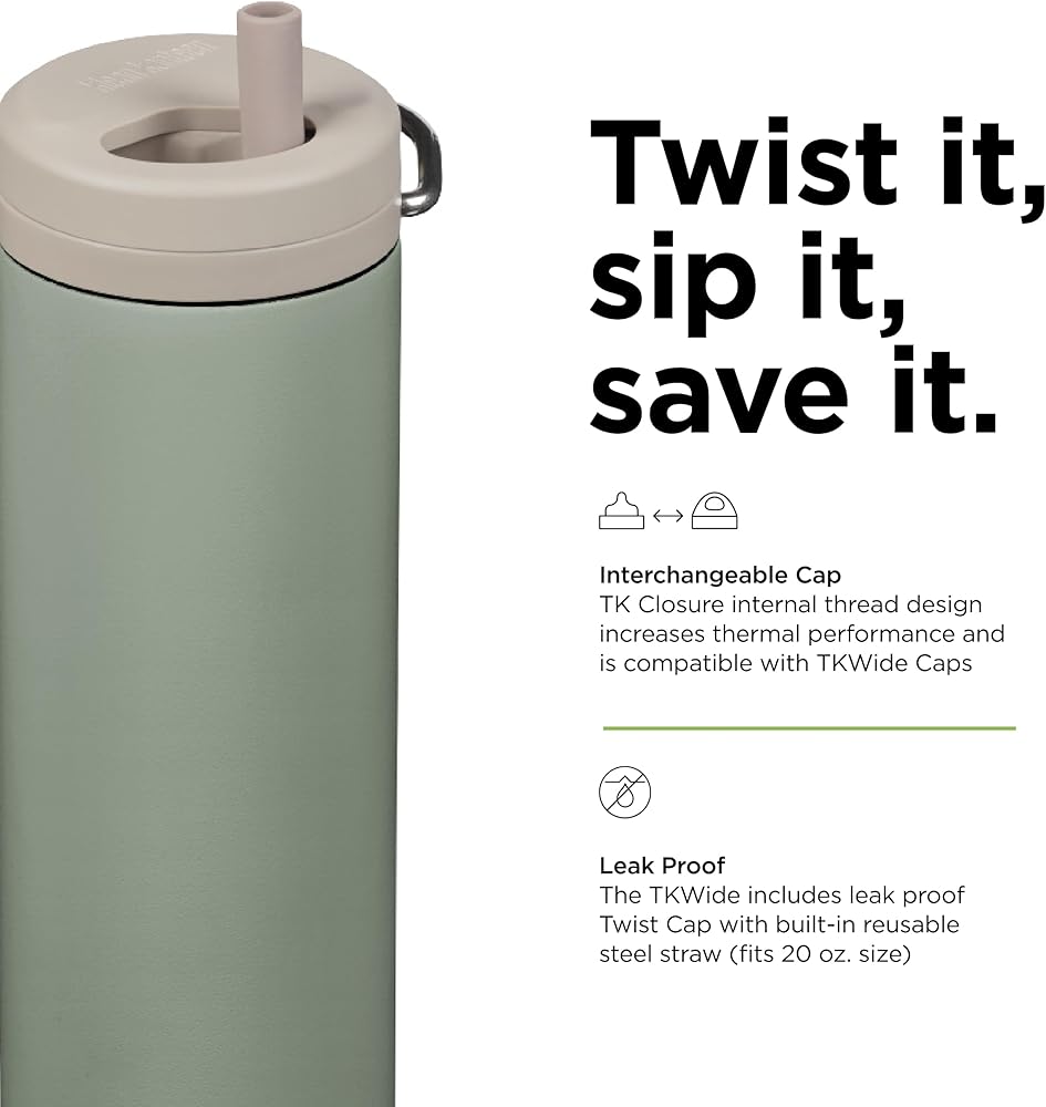 Thermal Performance: This water bottle has TK Closure internal thread design to increase thermal performance and is compatible with TKWide caps